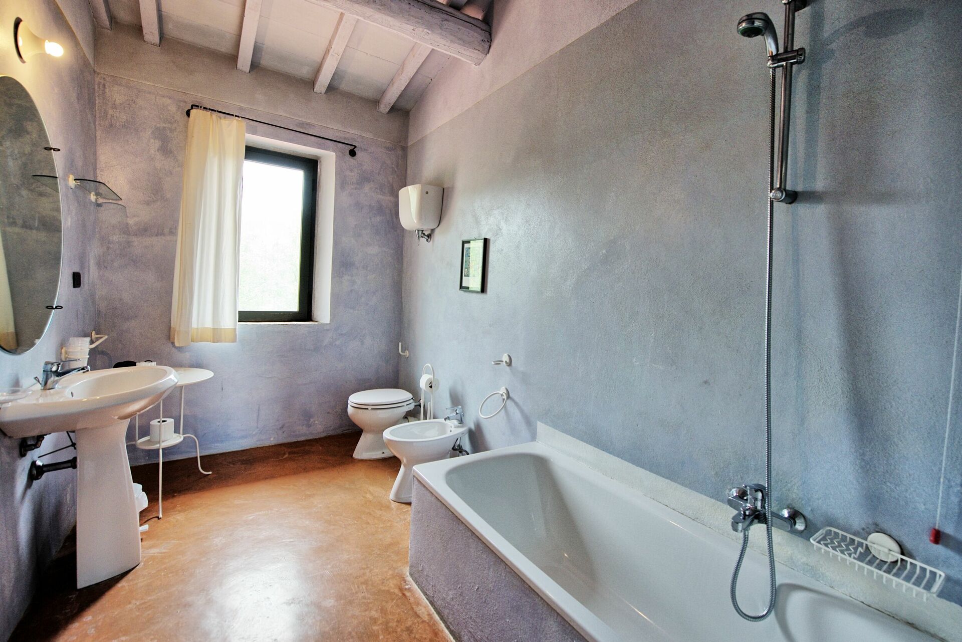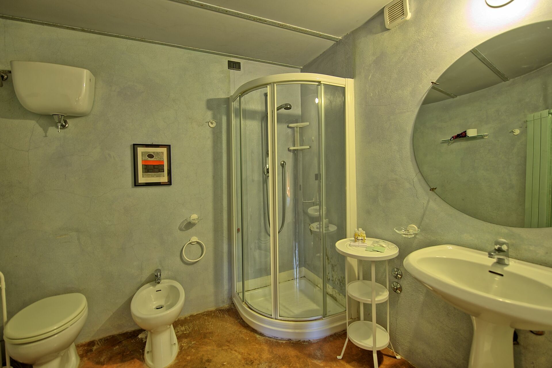 First Floor: large double bedroom with an extra single sofa bed, private bathroom with bathtub, bedroom with two single beds and private bathroom with bathtub, bedroom with two single beds and private bathroom with bathtub, bedroom with two single beds and an additional single sofa bed with a private bathroom with shower.