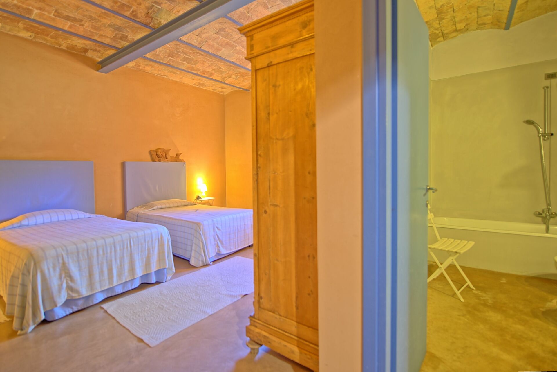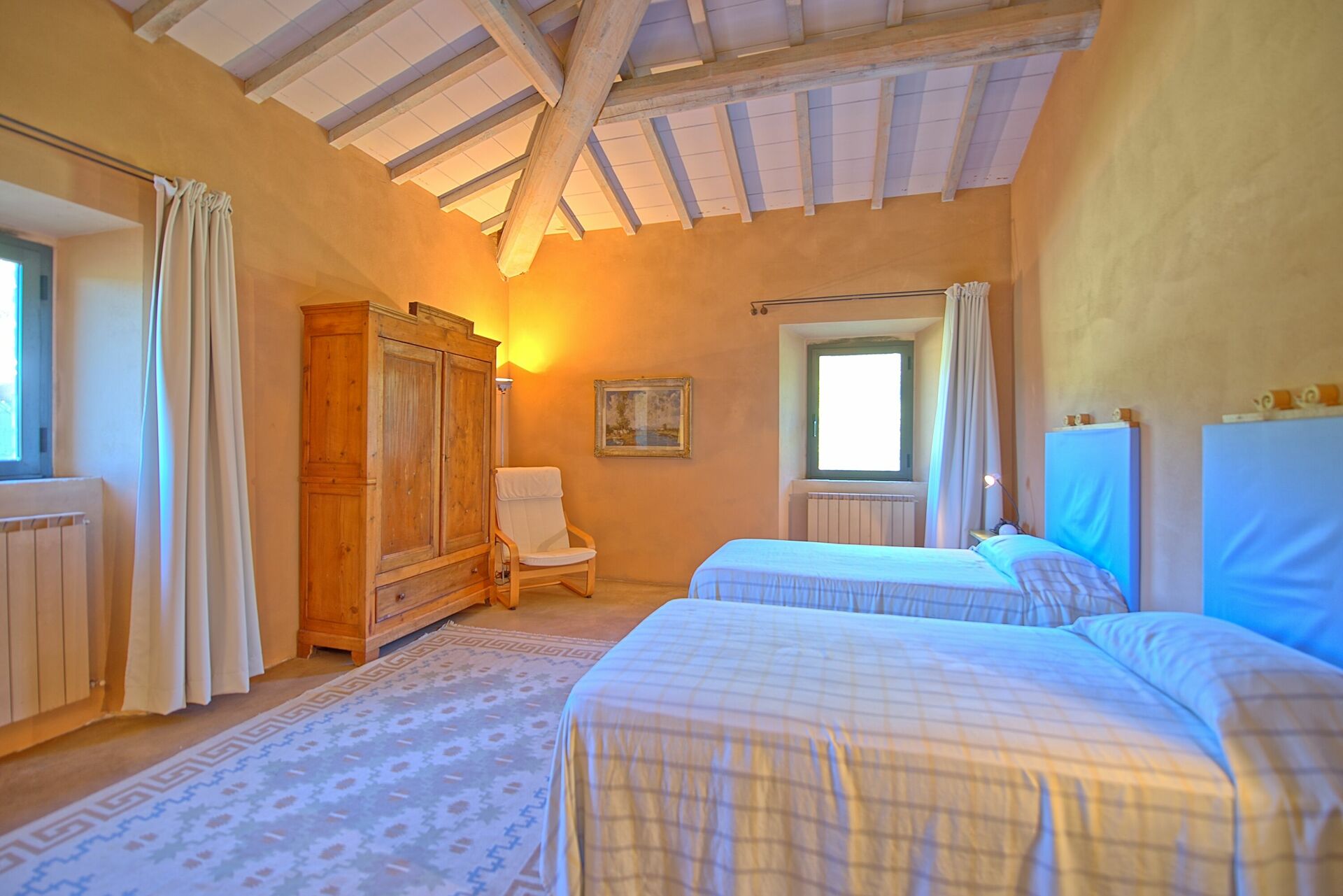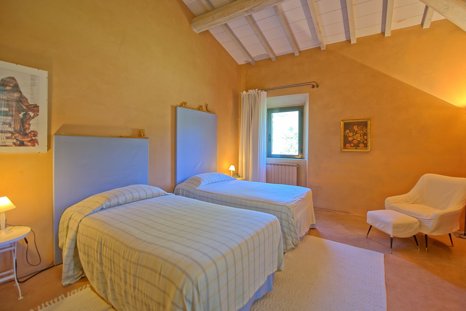 First Floor: from the dining room a stair case give the access to the last 4 bedrooms of the house, all of the bedroom have two single beds, (joinable upon request), each bedroom has its own bathroom with bathtub only one has shower box.