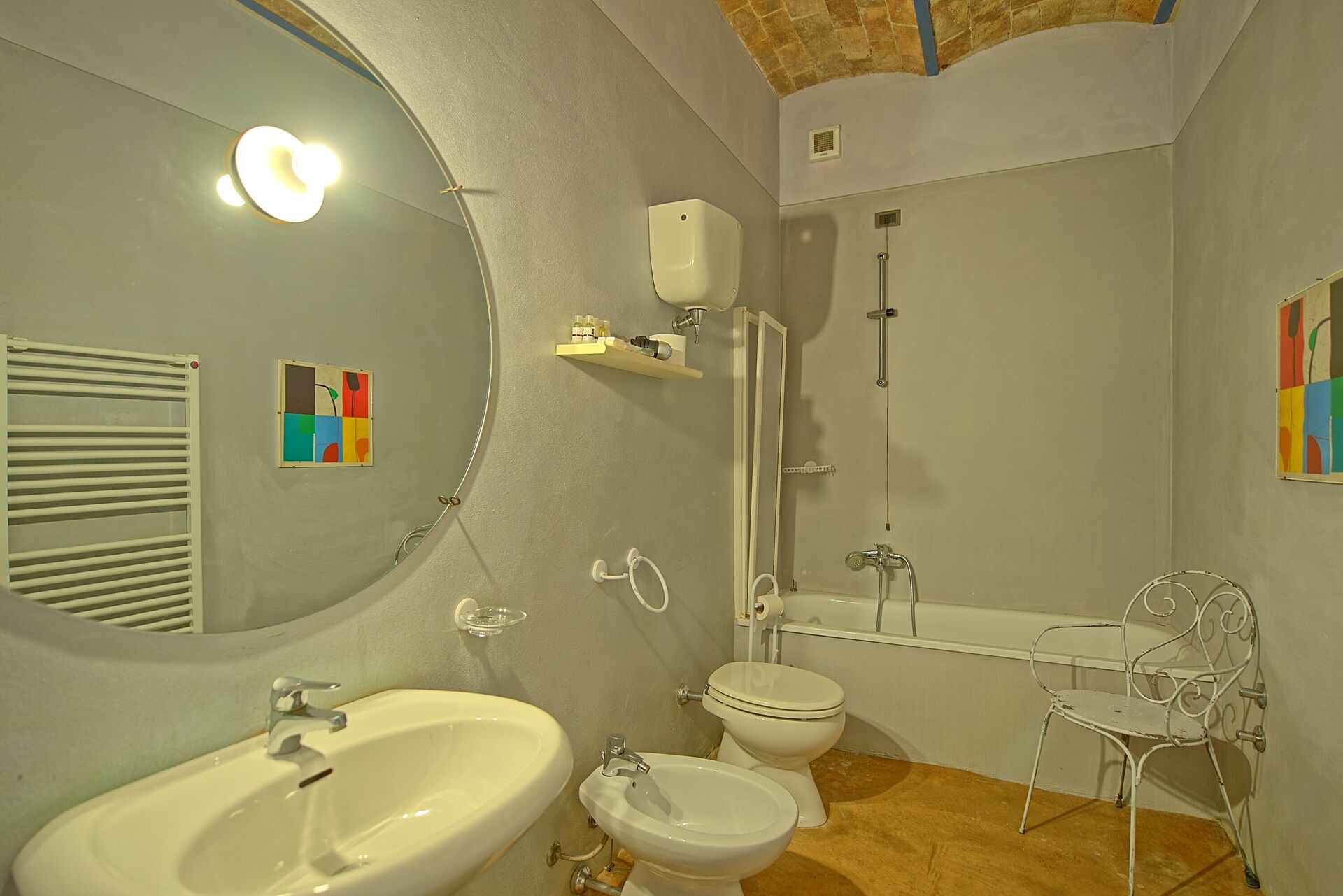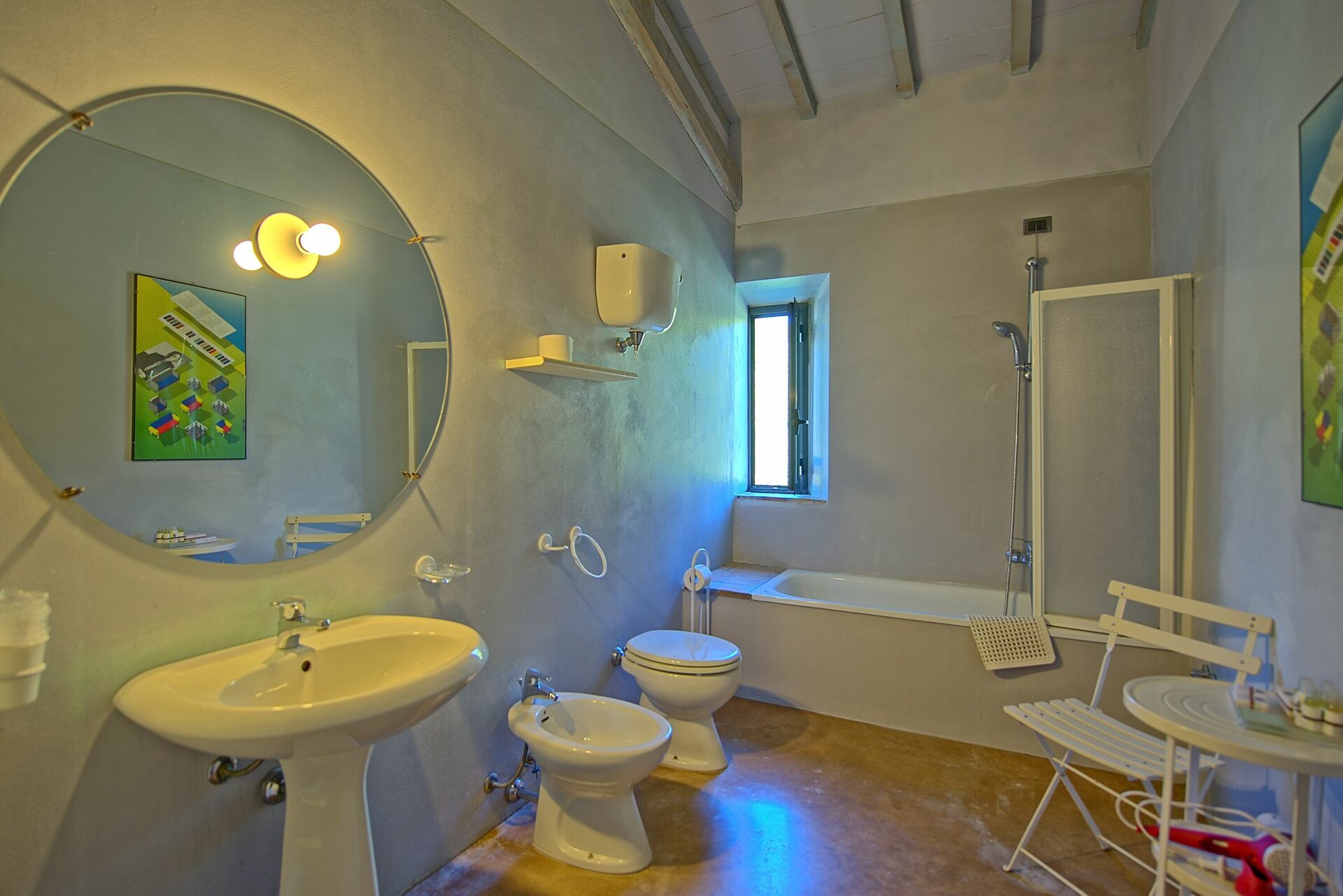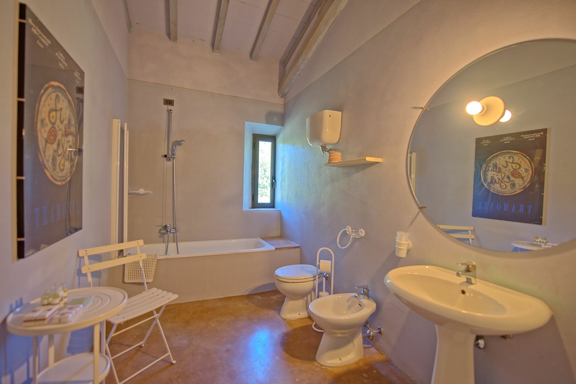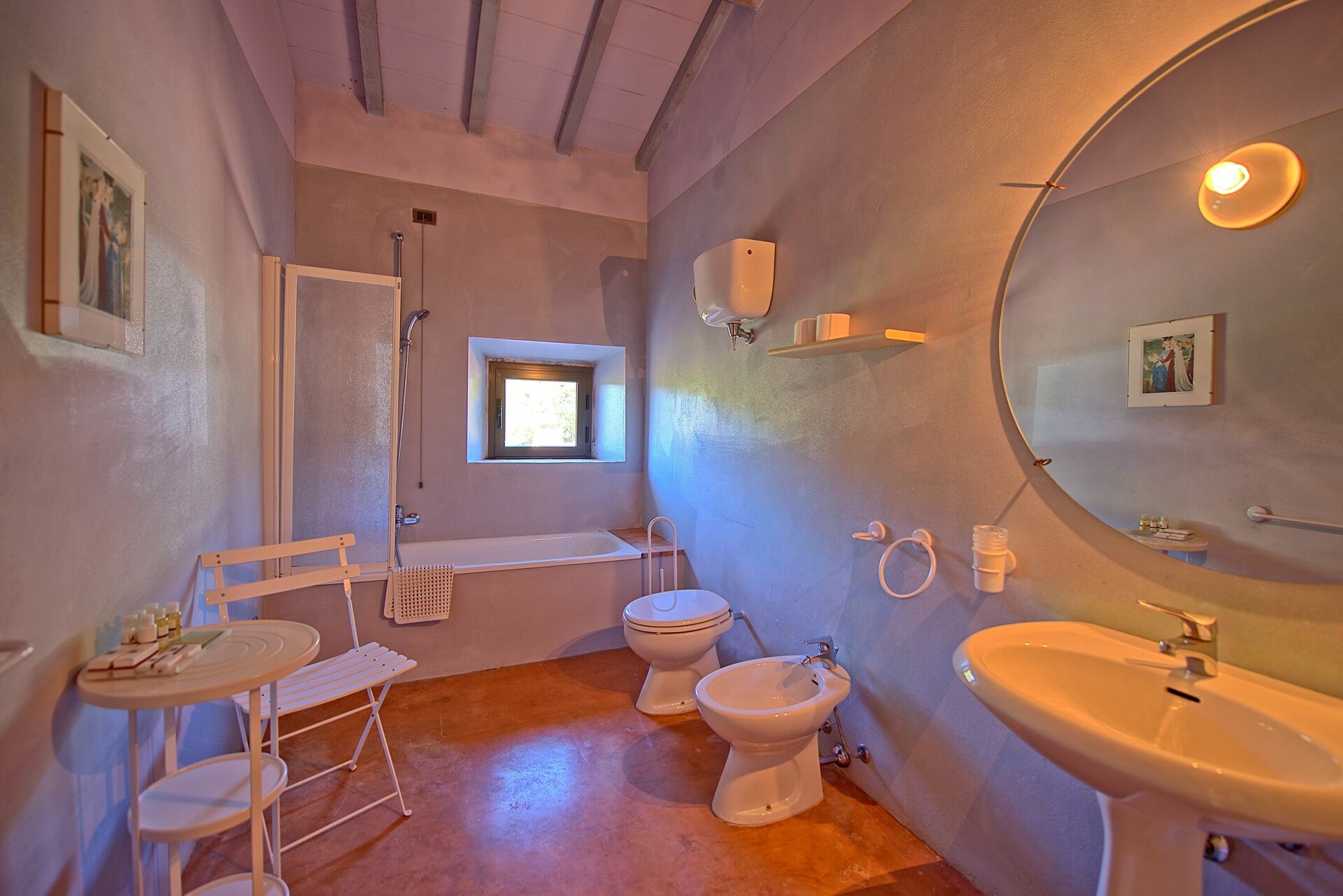 First Floor: from the dining room a stair case give the access to the last 4 bedrooms of the house, all of the bedroom have two single beds, (joinable upon request), each bedroom has its own bathroom with bathtub only one has shower box.