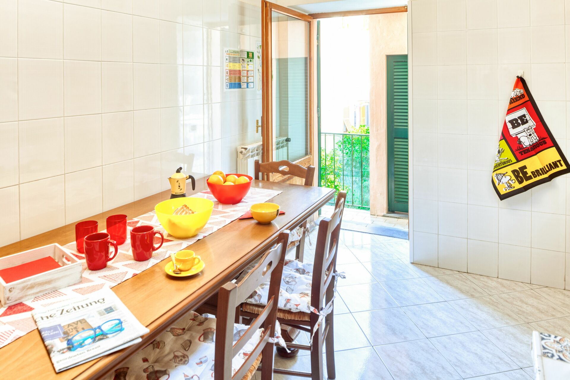 Equipped kitchen, with dining table, dishwasher, oven, microwave oven, toaster, Moka, American coffee machine, Nespresso, kettle.