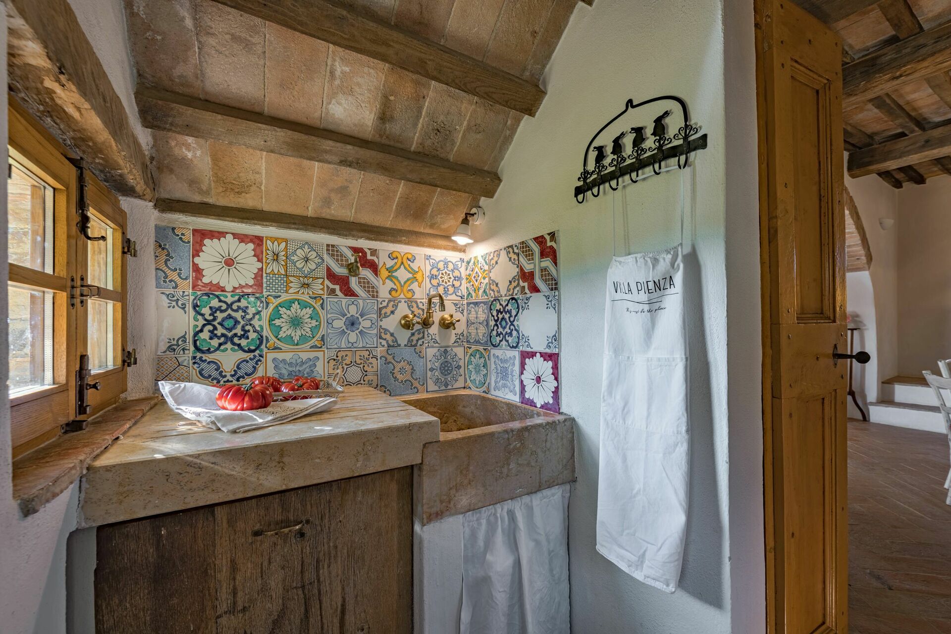 La Villa Del Cigno Bianco is a lovely stone building (500 sq m) with private pool, air conditioning and WiFi internet. The property can sleep up to 12 guests comfortably in six bedrooms with seven bathrooms. La Villa Del Cigno Bianco is located in the centre of Pienza, Italy and only 15 km (10 mi) from Montepulciano in the tourist area "Orcia Valley". In nearby towns there are local shops where you can find fresh produce and other items. If you can't find what you need locally, there is a shopping center located 17 km (10 mi) from the property where you can purchase your food and personal items.