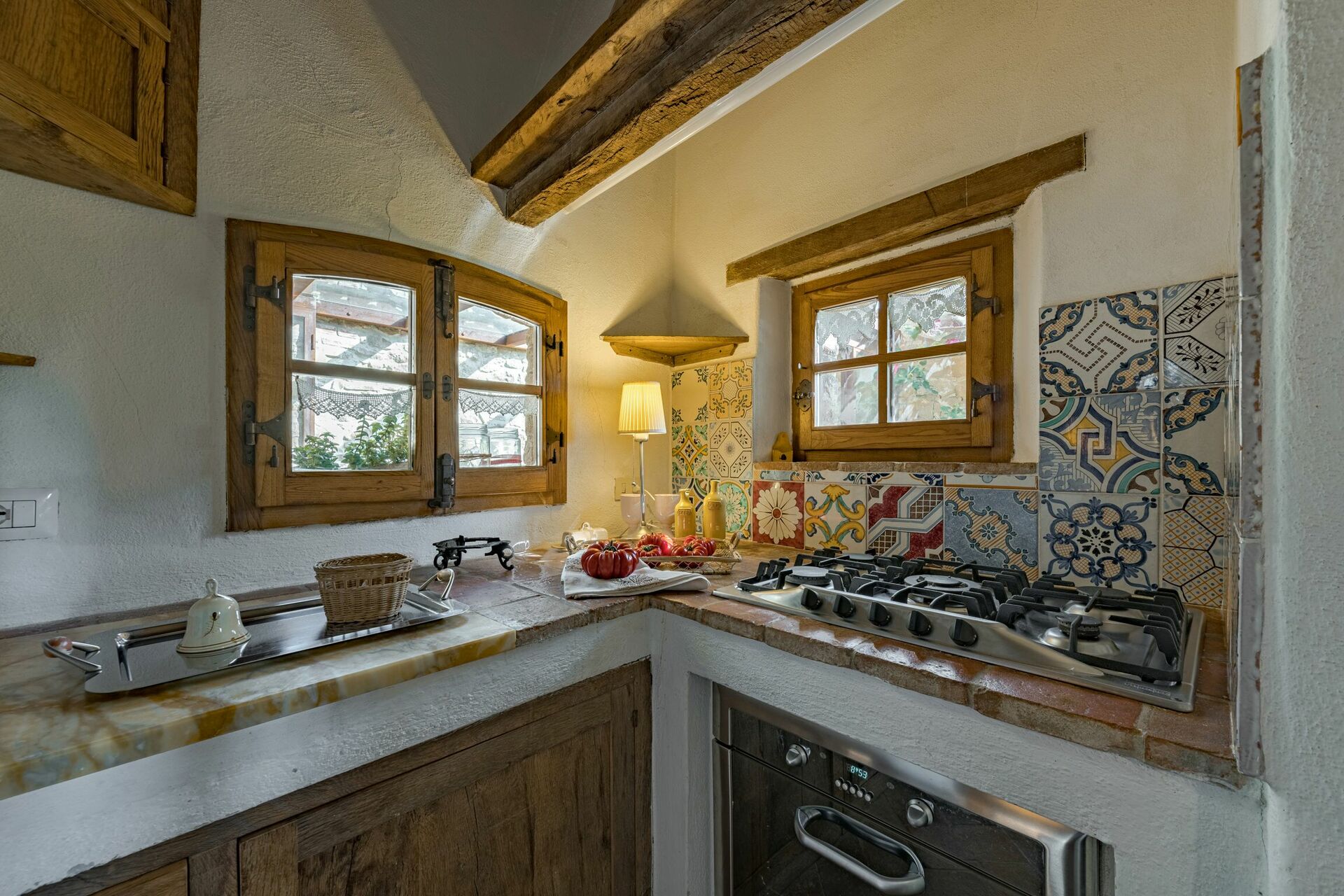 Kitchen: well equipped kitchen, dining table, dishwasher, fridge, freezer, microwave, stove top, oven, italian coffee machine, WIFI internet, exit to the terrace.