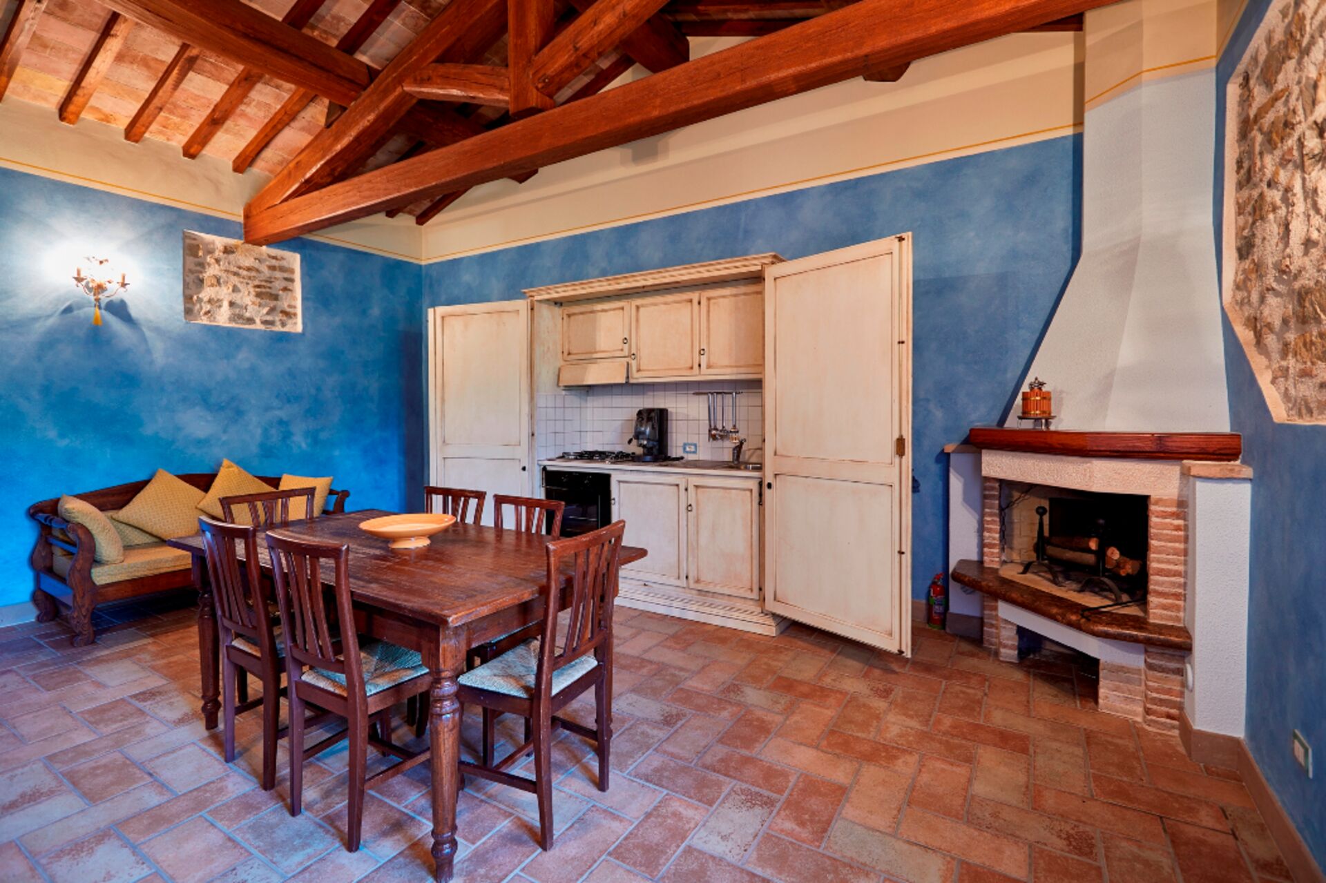 Dining with friends and family is a big part of the Italian culture. Take advantage of the kitchen to prepare meals using local produce while on your vacation. The kitchen includes coffee machine, stove and refrigerator, as well as, plenty of tableware and cutlery for up to five people.