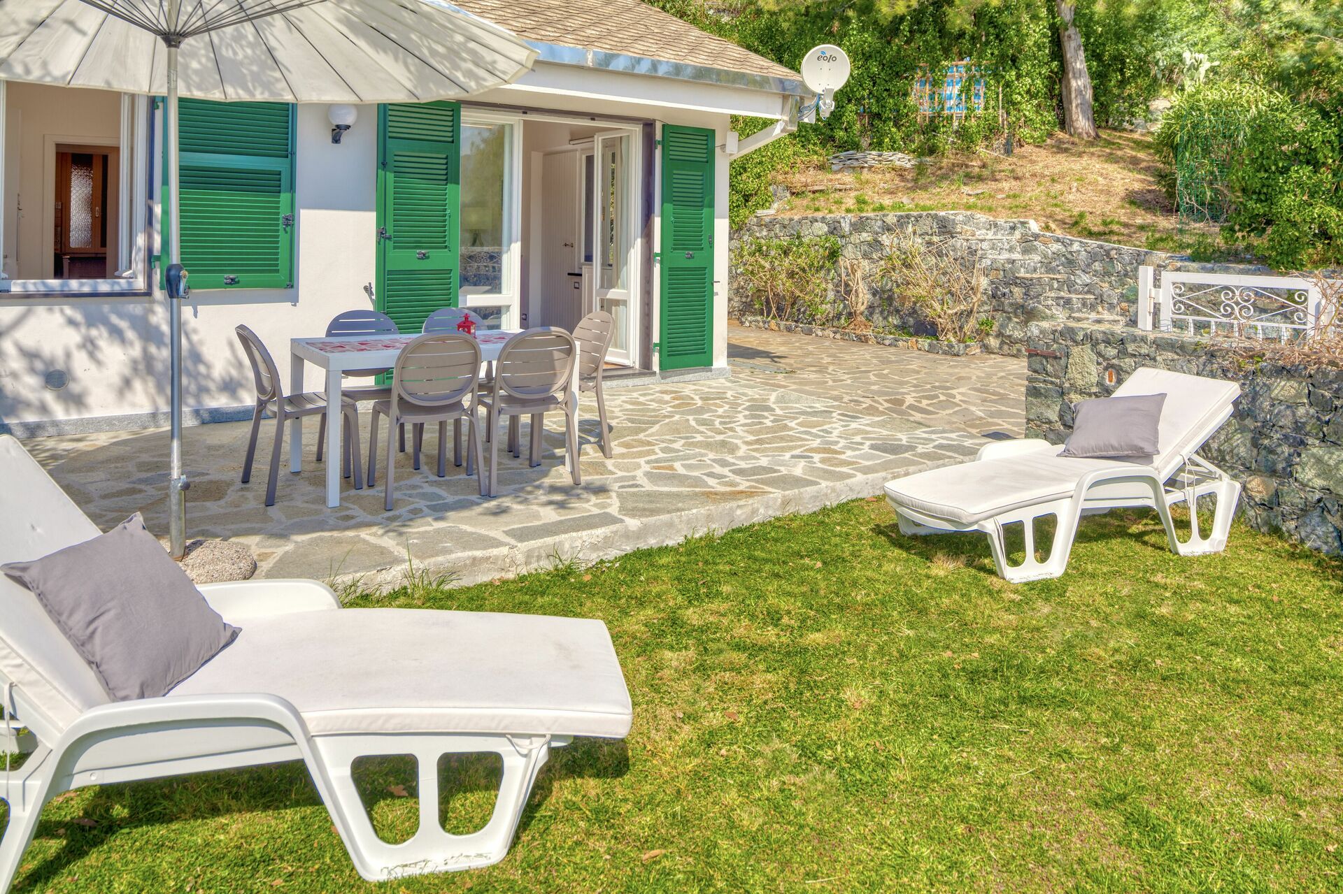 The outside area is equipped with table and chairs and two sunbeds, to relax and have al fresco meals.