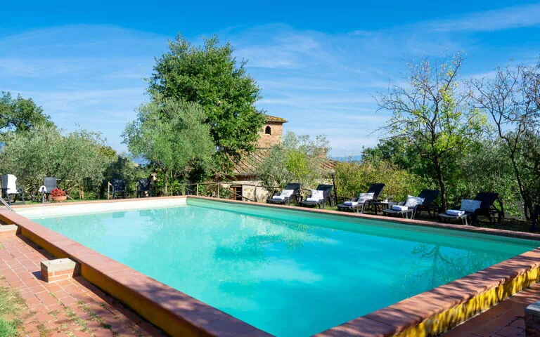 Poggio Cuccule is a magnificent vacation rental spanning 310 square meters across 2 levels, accommodating up to 16 guests across 8 bedrooms and 6 bathrooms, and featuring beautiful antique furnishings that lend the property a timeless charm.