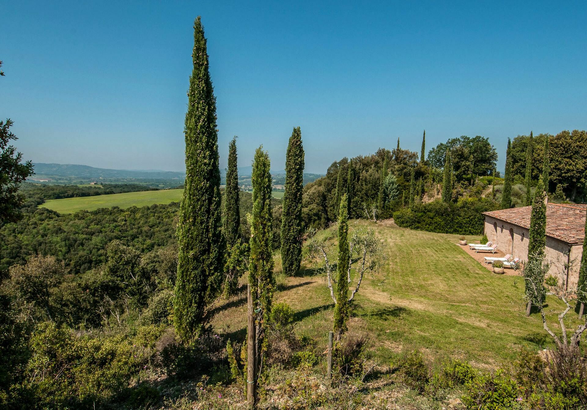 Property Lavacchio 10 is a beautiful stone building (360 sq m) that includes WiFi internet, private pool and air conditioning. The property can sleep up to ten guests comfortably in five bedrooms with four bathrooms. Conveniently located 12 km (7 mi) from Montalcino, Italy in the tourist area "Grosseto - Maremma" and only 48 km (30 mi) from Montepulciano. There is a golf course nearby if you'd like to get in a round or two while on holiday.