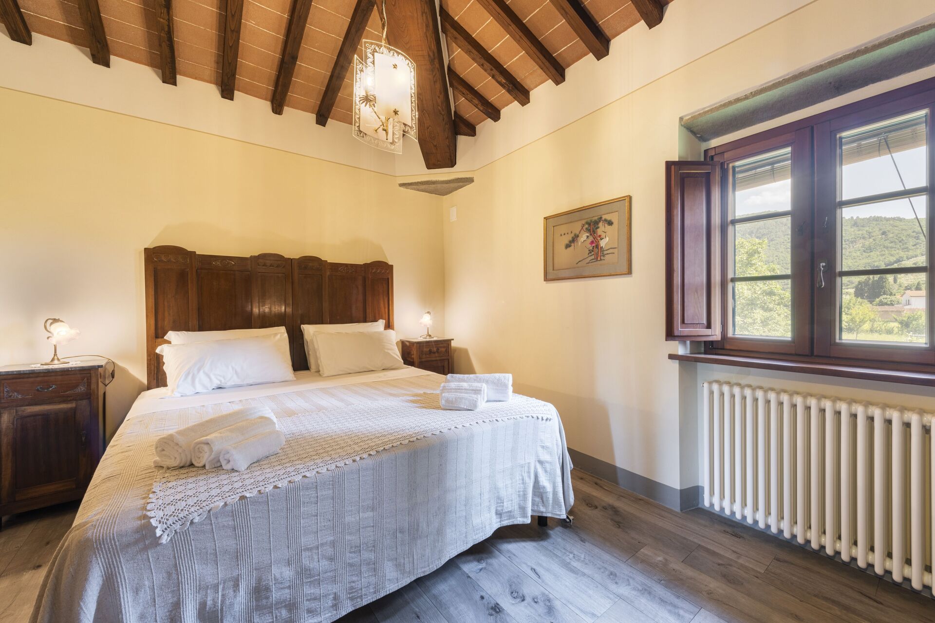 Upon arrival at Villa Chio you’ll find a lovely clean well-maintained property perfect for a splendid holiday in Tuscany. For your enjoyment you will find a private pool where you can unwind while enjoying a nice cold beverage after a busy day of visiting museums. There is a kitchen including microwave, toaster and refrigerator, as well as, plenty of tableware and cutlery for up to six people. If you prefer to dine 'al fresco', there is a fully furnished garden where you can enjoy the weather while dining outdoors.