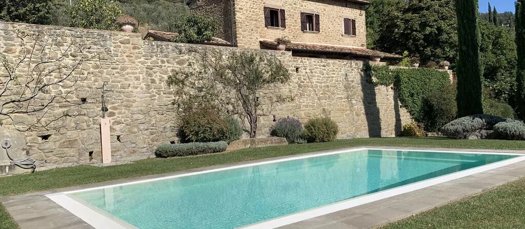 The pool is perfect for lounging, salt water clean, grass areas up to the pool edge, incredible view of the Val d’Chiana. The cafe at Torreone run by Luca is a short walk.
