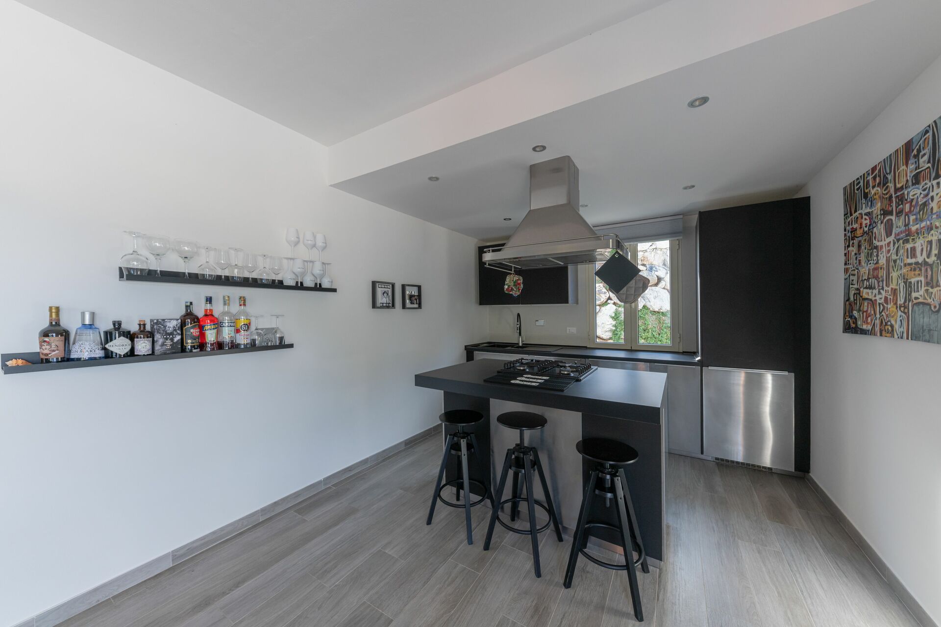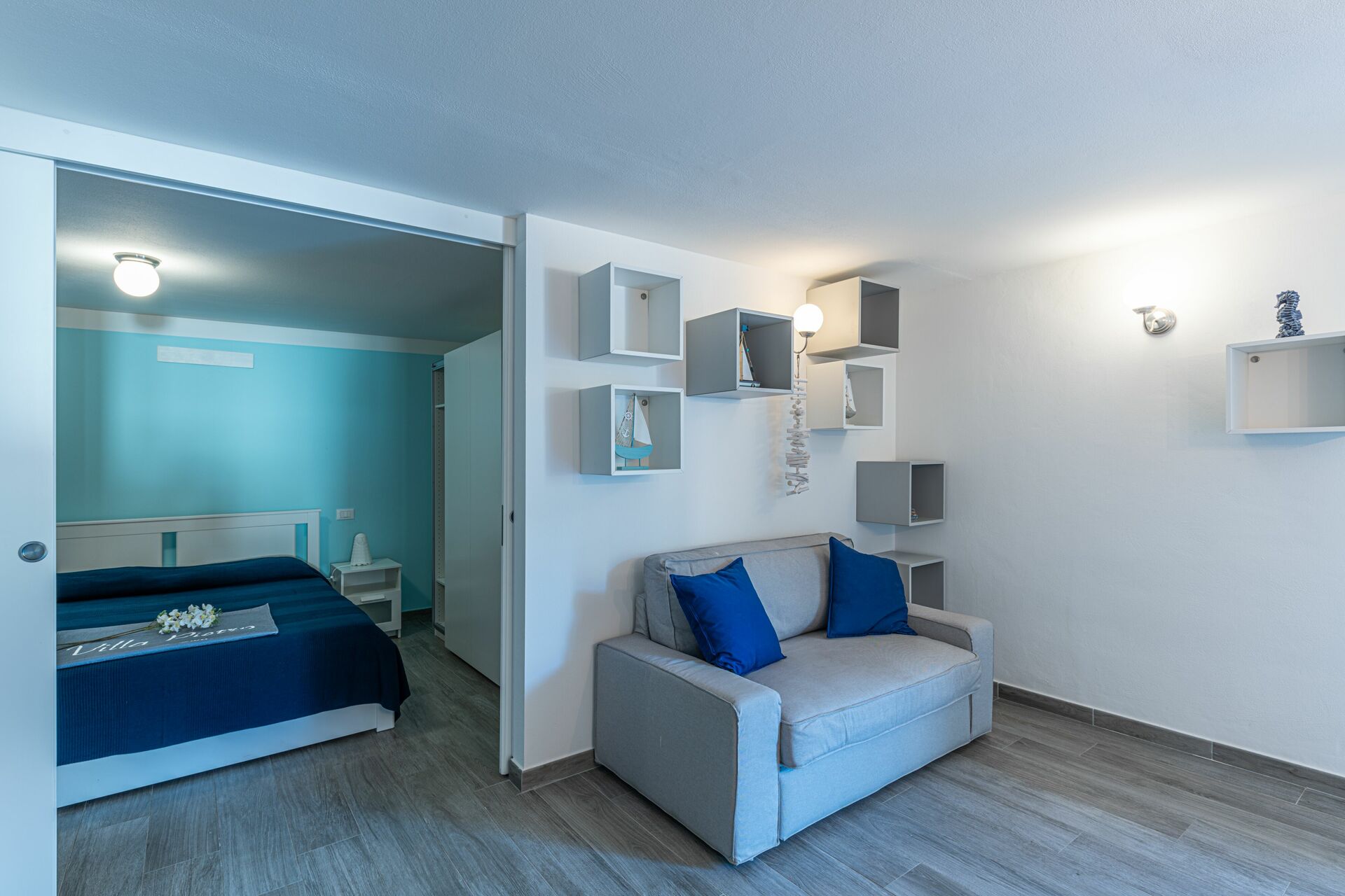 Open space: sofa, dining table, WIFI internet, air conditioning, satellite tv, mosquito net, fridge, stove top, freezer, dishwasher, well equipped kitchen, oven, toaster, italian coffee machine, american coffee machine, exit to the garden, exit to the patio.