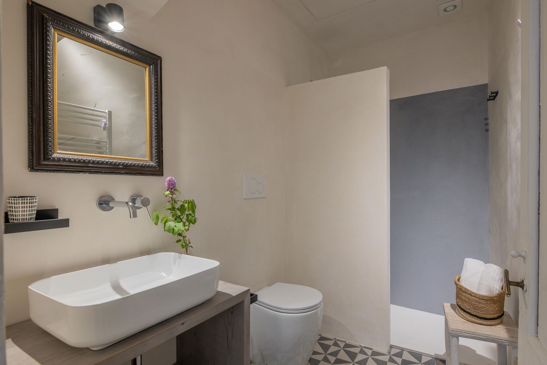 Bedroom + Ensuite Bathroom: double bed, WIFI internet, air conditioning, basin, toilet, bidet, shower, hairdryer.