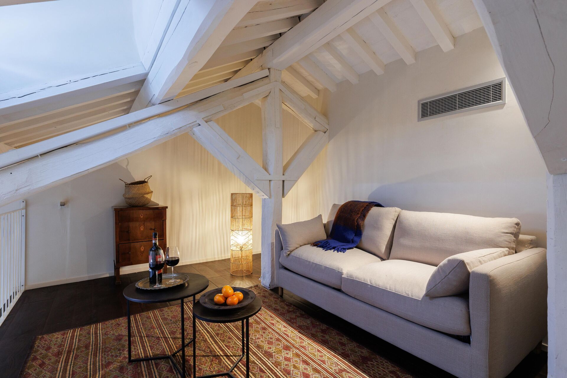 Bedroom + Ensuite Bathroom: double bed, WIFI internet, air conditioning, armchair, basin, toilet, bidet, shower, hairdryer.