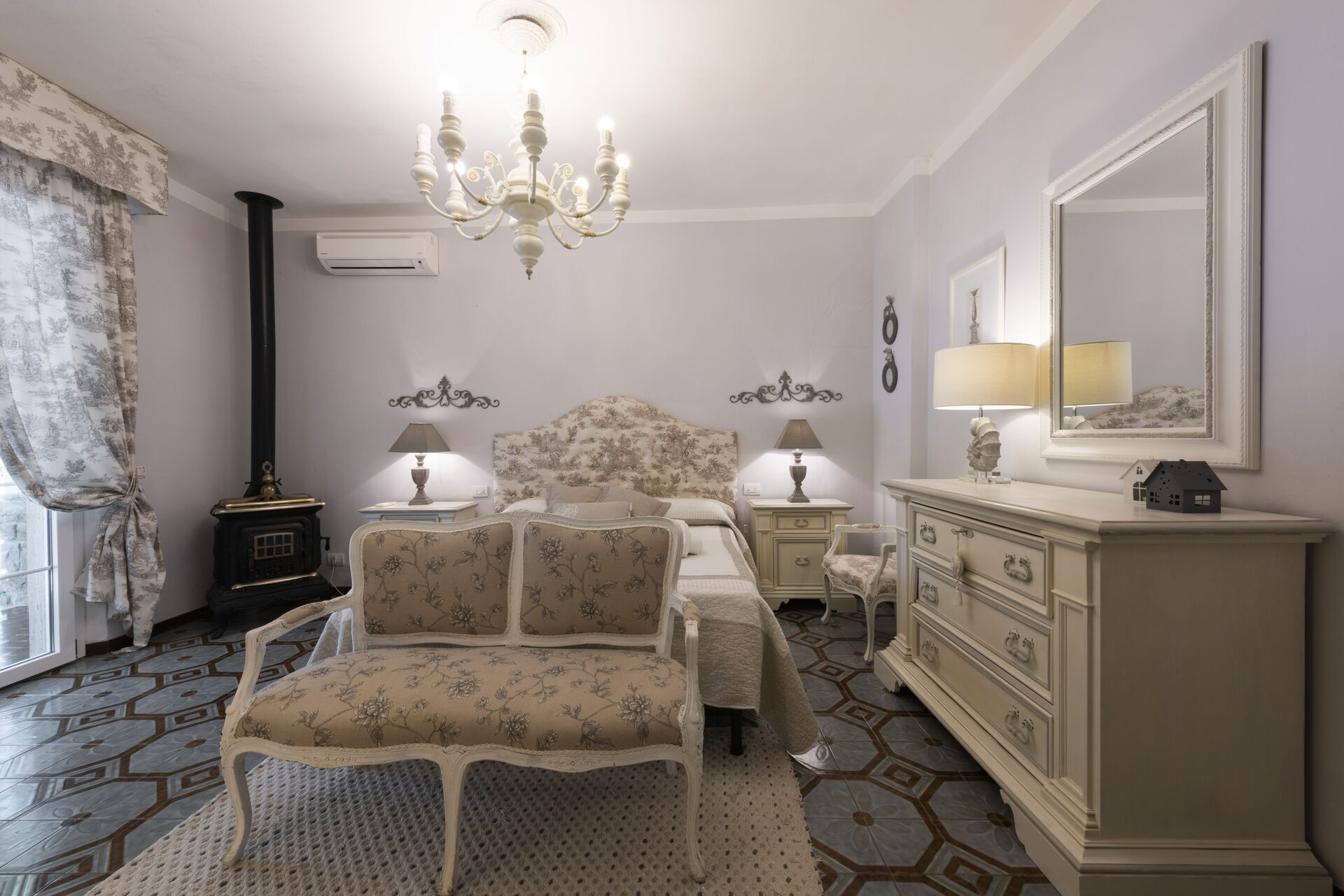 Bedroom + Ensuite Bathroom: double bed, sofa bed, WIFI internet, air conditioning, basin, toilet, bidet, bathtub.