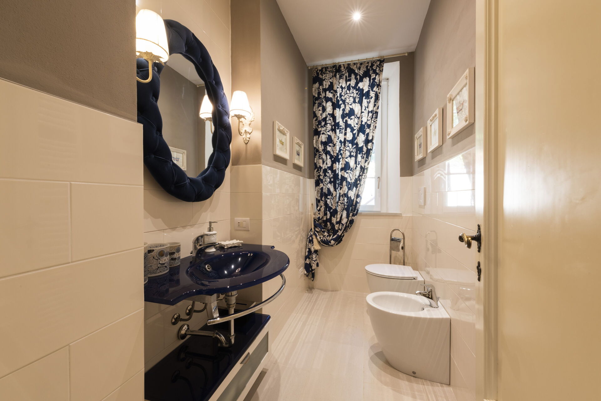 Bathroom: basin, toilet, bidet, shower.