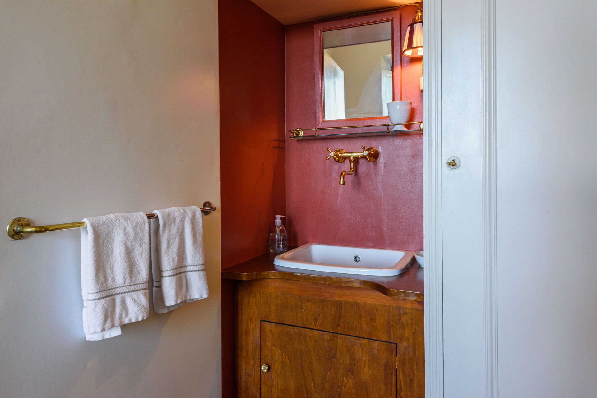 Bathroom 1: basin, toilet, bidet, bathtub.