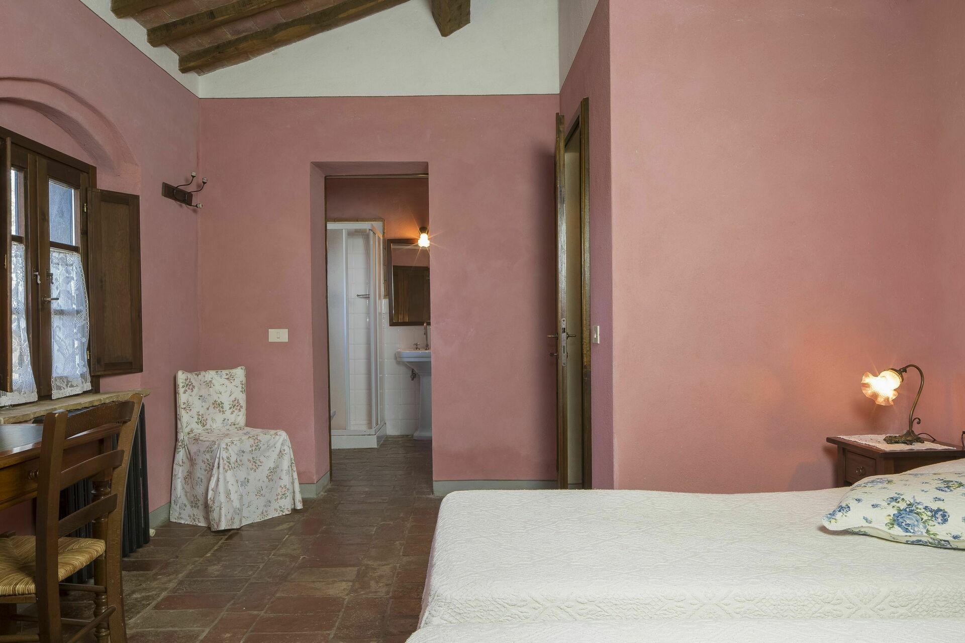 Bedroom + Ensuite Bathroom 2 (25 m2): double bed, WIFI internet, satellite tv, armchair, working desk, basin, toilet, bidet, shower, hairdryer.