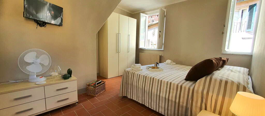 After arriving at Loft Lucca you’ll find a lovely clean well-maintained property with views of the city ideal for a peaceful vacation in Tuscany. A real benefit of renting a home, instead of multiple hotel rooms, is the ability to relax after a busy day of sightseeing with family and friends. Enjoy a meal together along with some local wine to finish the day. If you enjoy cooking for family and friends there is a well-equipped kitchen including coffee machine, microwave, toaster, stove and refrigerator, as well as, plenty of tableware and cutlery for up to five people.