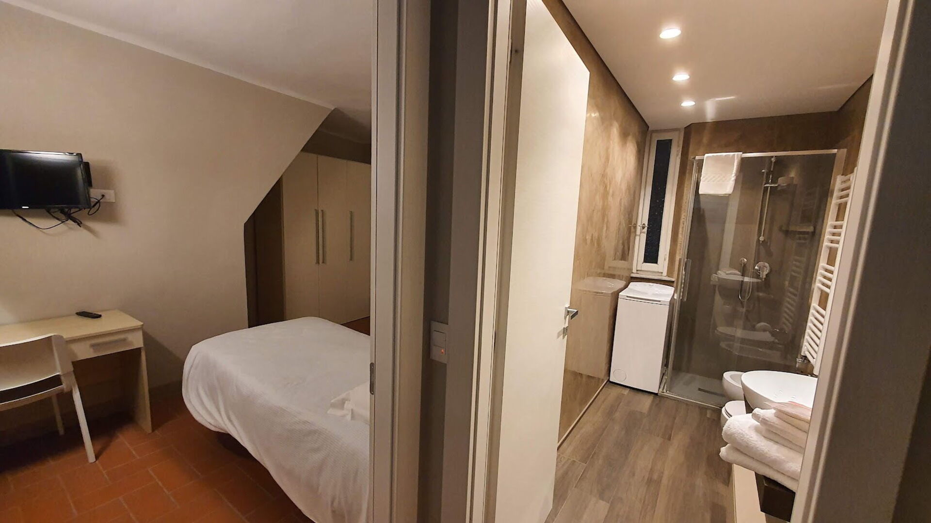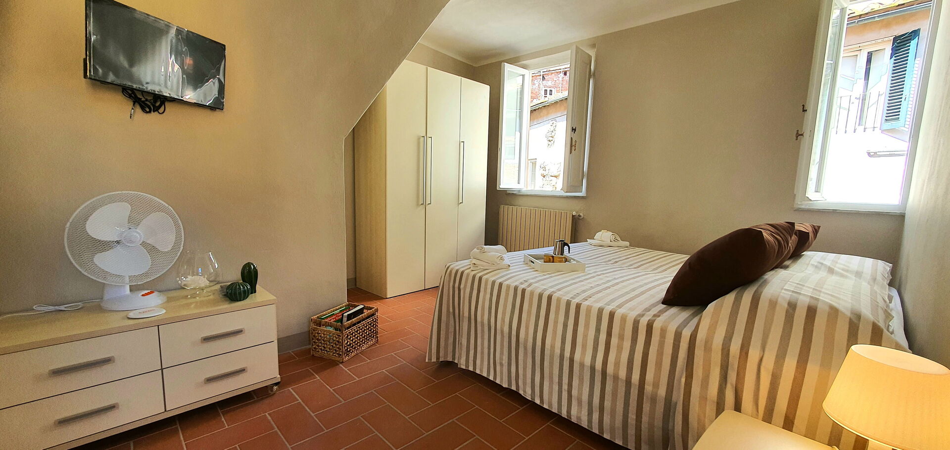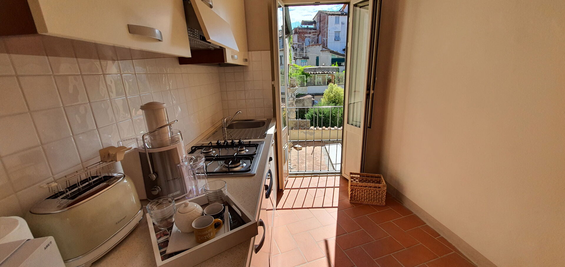 Upon arrival at Loft Lucca you’ll find a nice clean well-maintained property with views of the city perfect for a splendid holiday in Tuscany. A real benefit of renting a home, instead of multiple hotel rooms, is the ability to relax after a busy day of sightseeing with family and friends. Enjoy a meal together along with some local wine to finish the day. If you enjoy cooking for family and friends there is a well-equipped kitchen including coffee machine, microwave, toaster, stove and refrigerator, as well as, plenty of tableware and cutlery for up to five people.