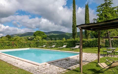 Located in Montieri, Italy, "Pepi" is a beautifully renovated two-story semi-detached vacation rental surrounded by picturesque meadows and fields. This charming property offers a private yard of 1,500 square meters and a spacious garden spanning 500 square meters, complete with a lush lawn and a wildlife garden. Enjoy the convenience of on-site amenities such as a stunning swimming pool (12 x 6 meters, depth 120 - 120 cm, seasonally available from May 1 to October 1), a terrace with garden furniture and a barbecue, air conditioning, and a washing machine.