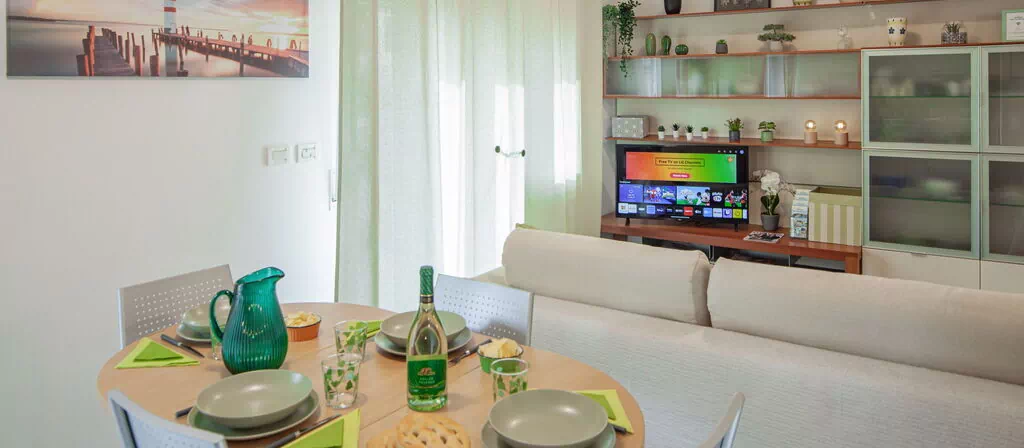Fast Wi-Fi, 43-inch 4K Smart-TV, satellite TV channels: Italian channels in HD (TivùSat) and the main free-to-air international channels (from Astra satellite).