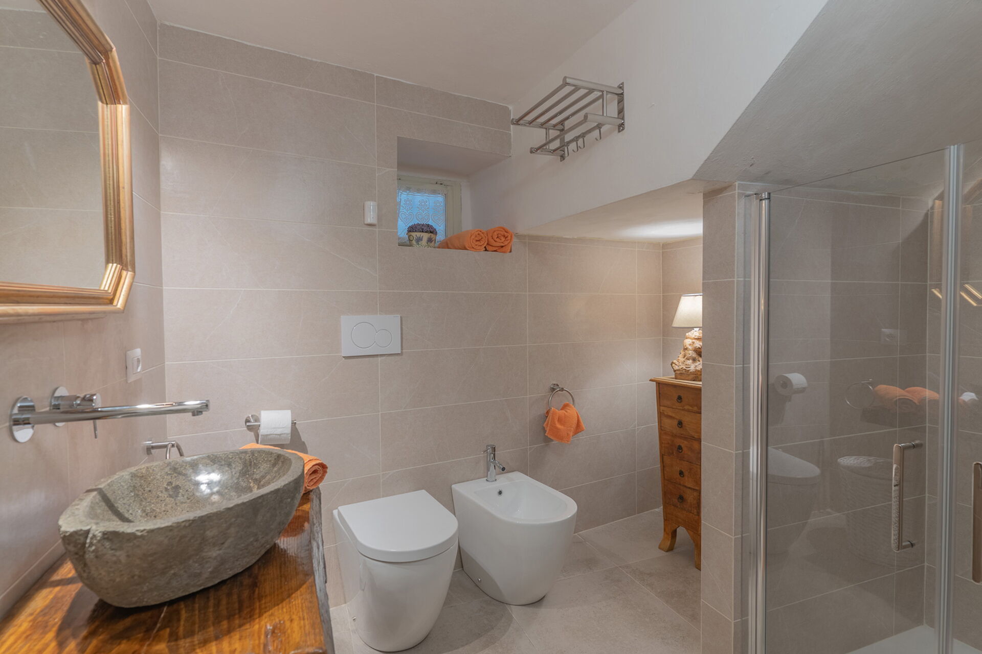 Bathroom 3: basin, toilet, bidet, shower, hairdryer.