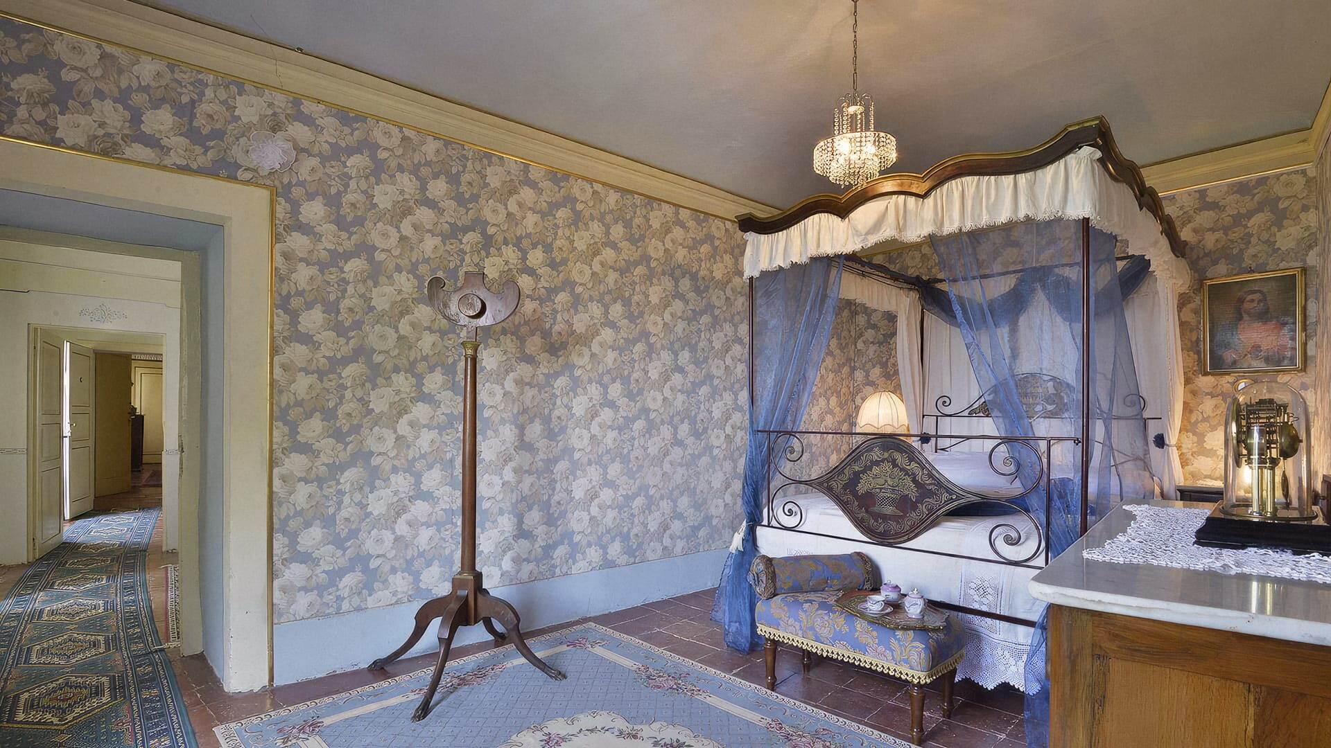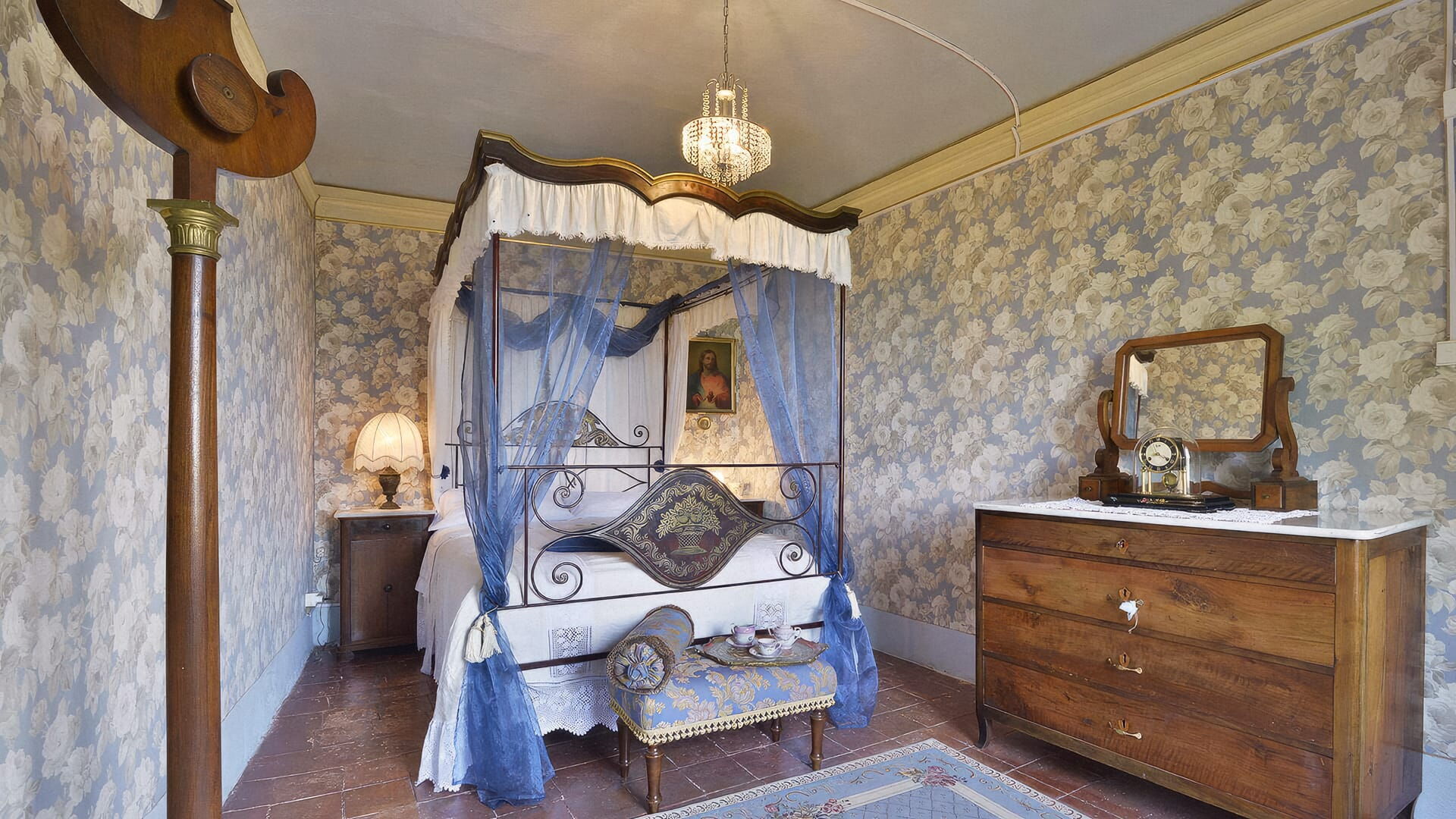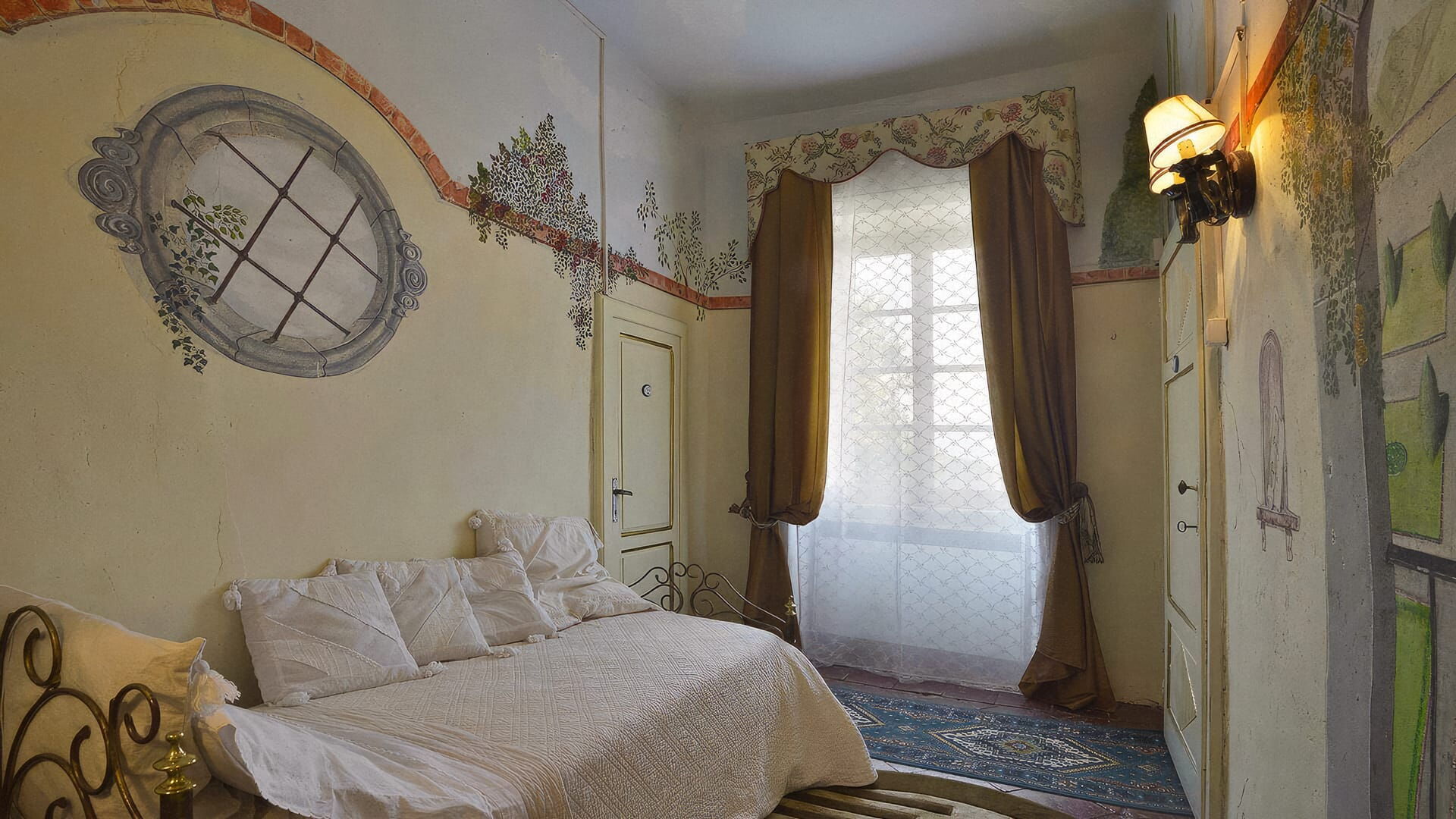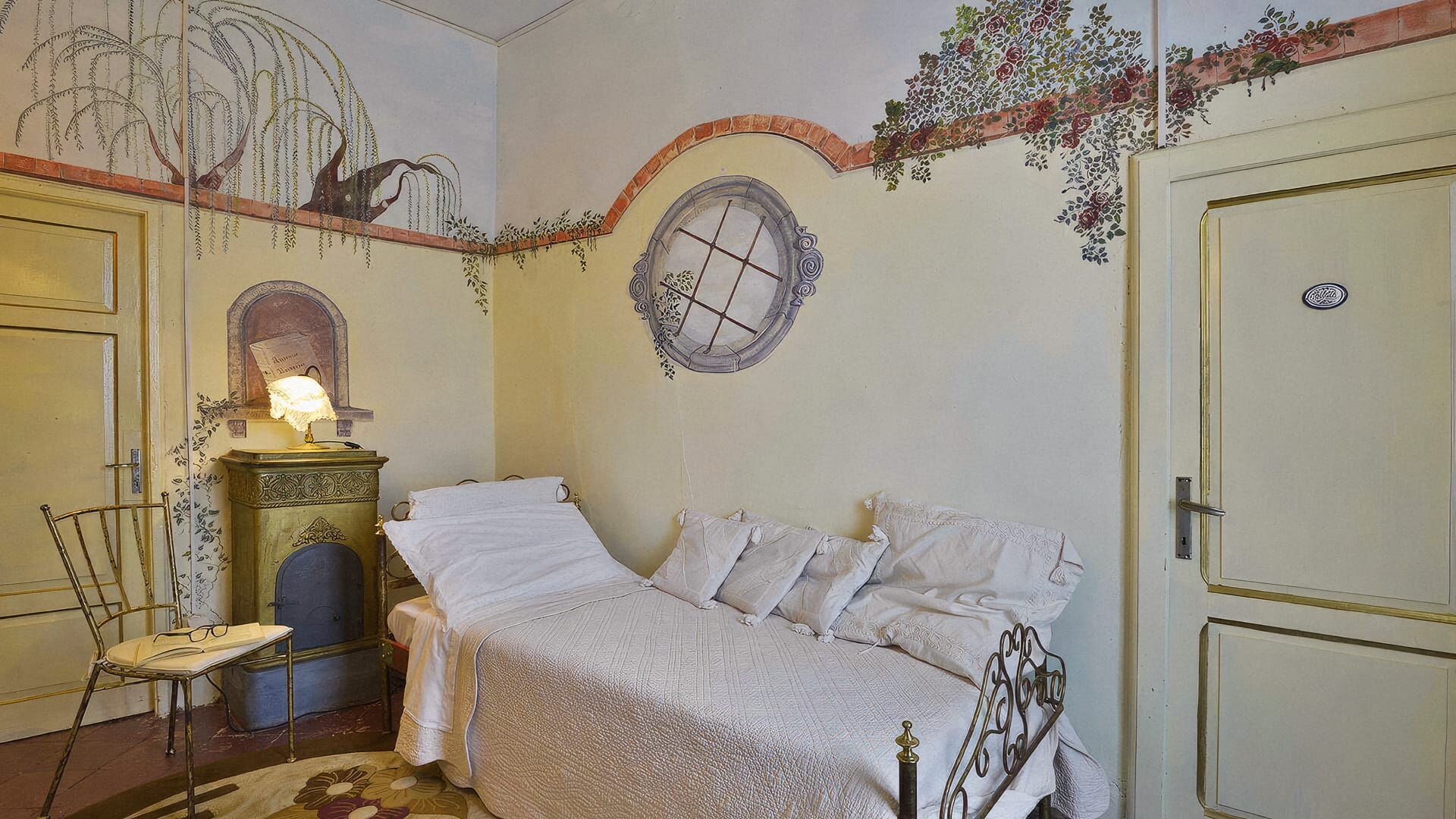 Bedroom + Ensuite Bathroom: double bed, basin, toilet, bidet, bathtub.