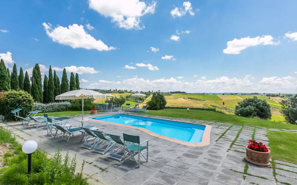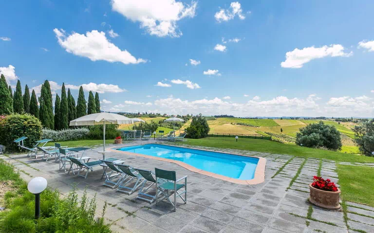 Casalsole is a magnificent structure located in the picturesque Florentine hills, Cerreto Guidi, Italy, offering twelve independent vacation rental apartments. The property boasts a private garden of 15 hectares, a swimming pool measuring 11 x 5 meters with a depth of 140 cm, a pool area with outdoor shower, garden furniture, and a barbecue. You will enjoy ample parking space and internet wifi connectivity.