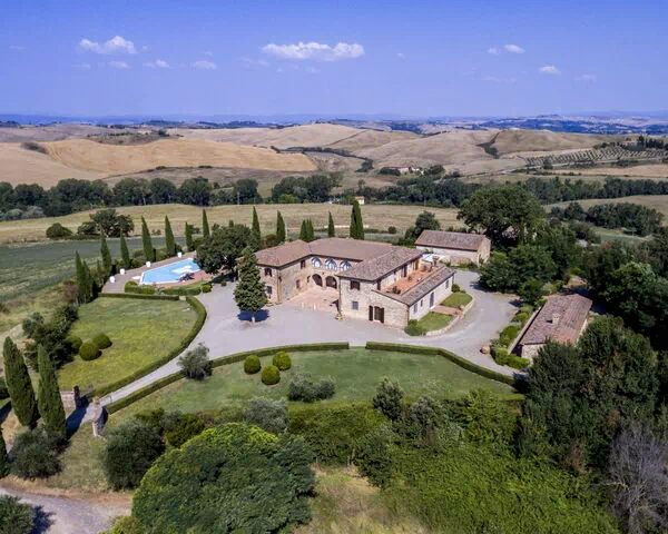 Vacation rental Villa Sulle Crete is a nice stone building (910 sq m) that includes air conditioning, private pool and WiFi internet. The property can sleep up to 20 guests comfortably in nine bedrooms with nine bathrooms. Conveniently located 6 km (4 mi) from Trequanda, Italy in the tourist area "Orcia Valley" and only 26 km (16 mi) from Montepulciano.