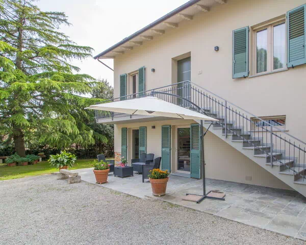 You are considering Casa Volpe, a beautiful, comfortable 2-family detached house in Castiglion Fiorentino, Italy. It is a renovated property located 1 km from the town center in a residential area. The property boasts a private garden of 250 m2, on-site parking, and an EV charging station. It offers amenities such as a yard, internet WiFi, parking, and an EV charging station. The property is ideal for a vacation rental.