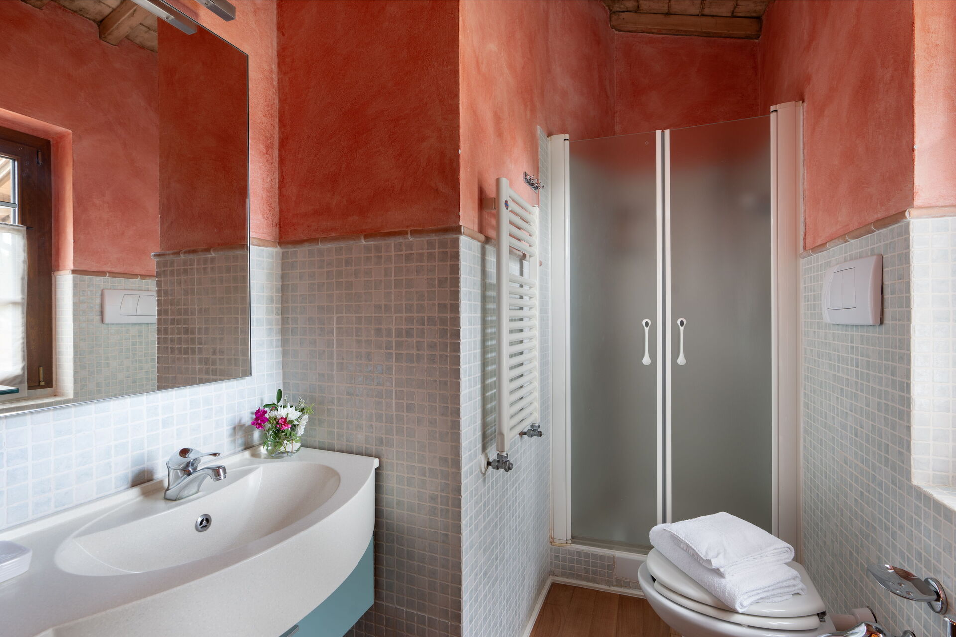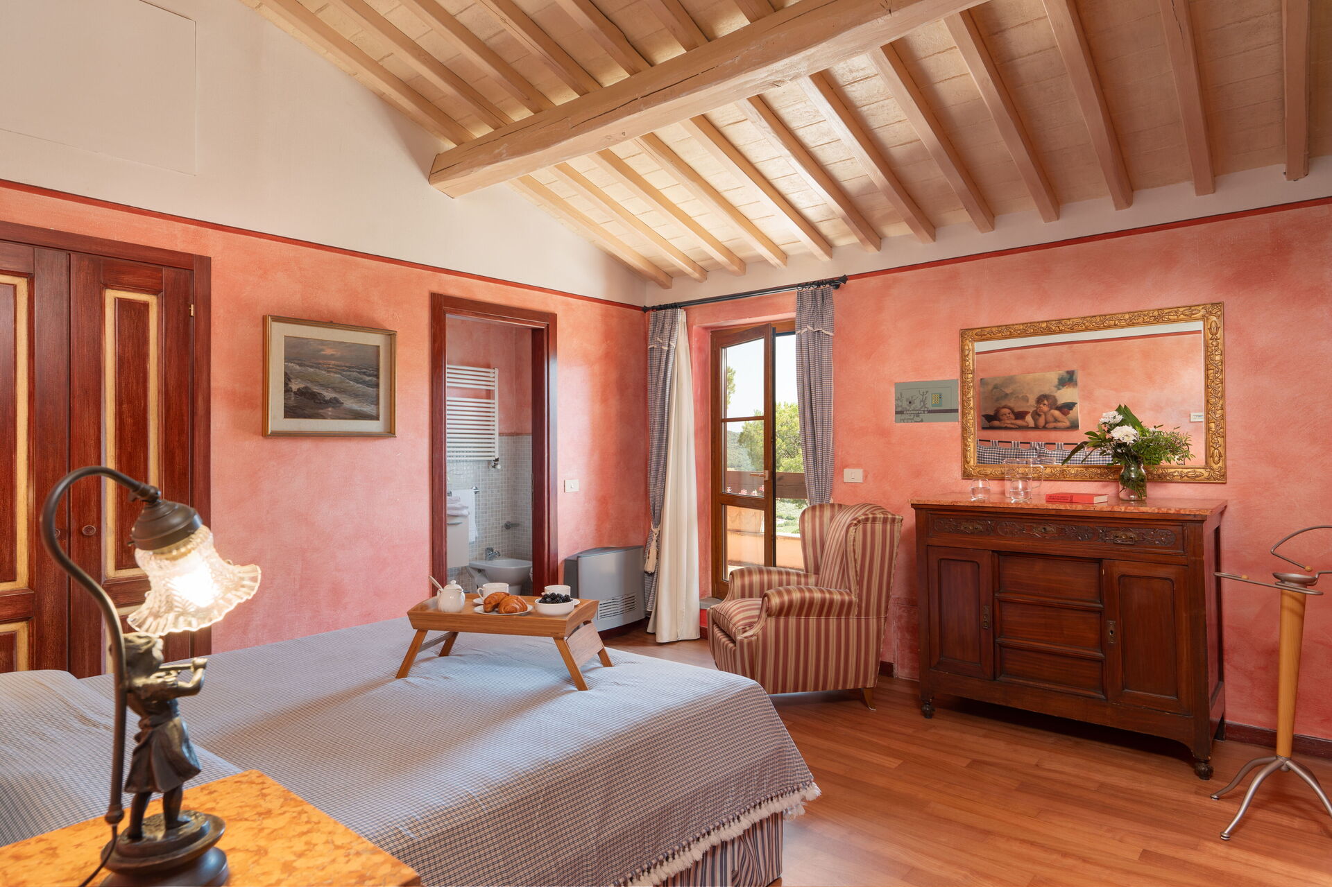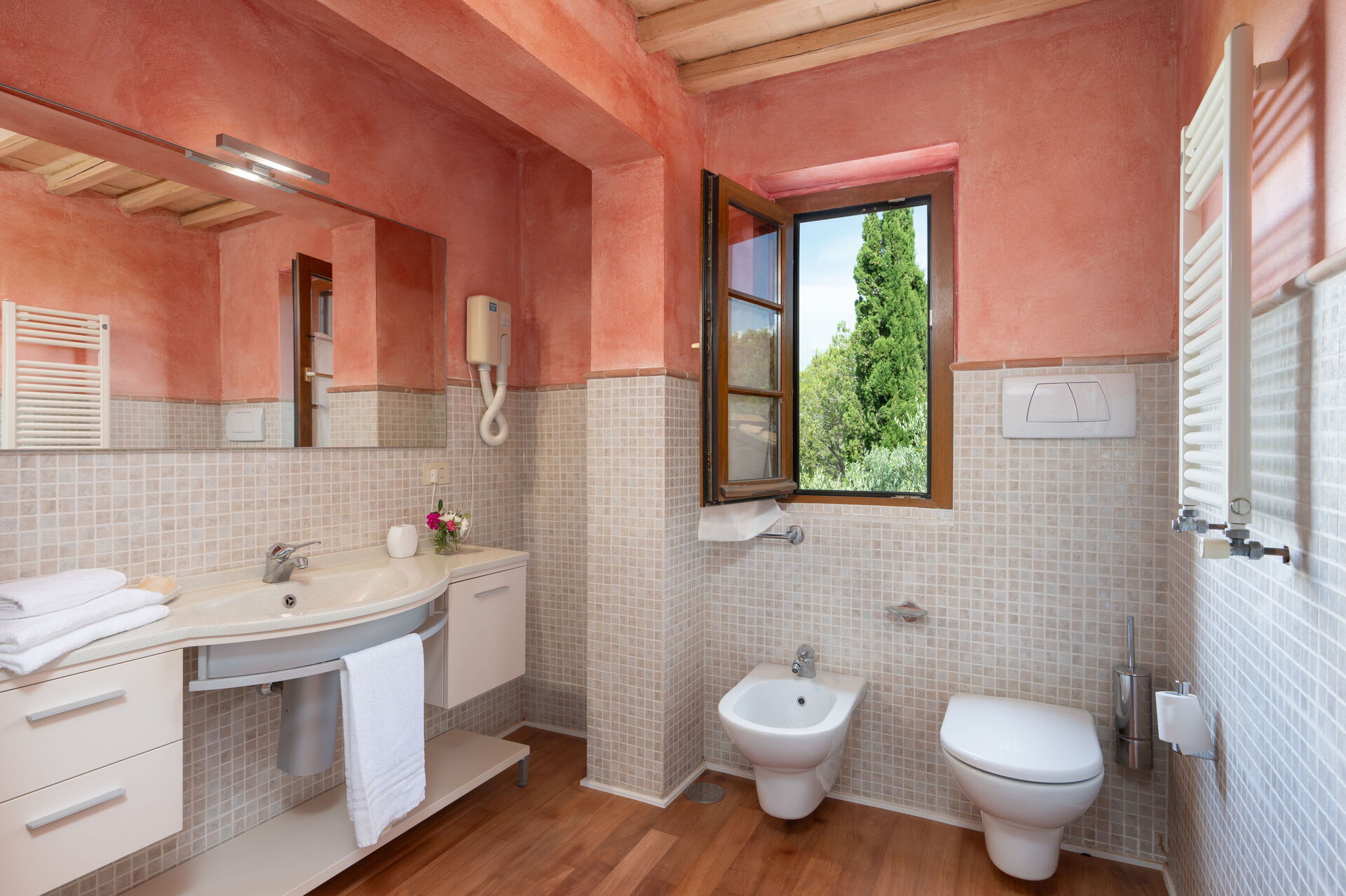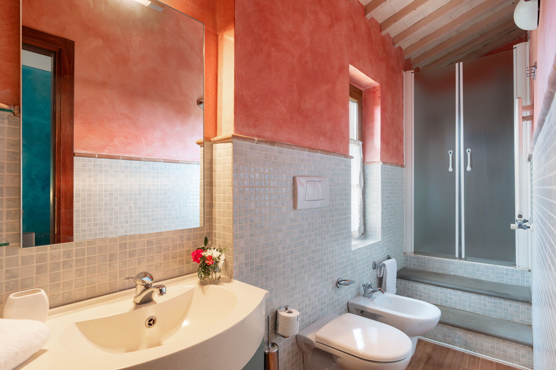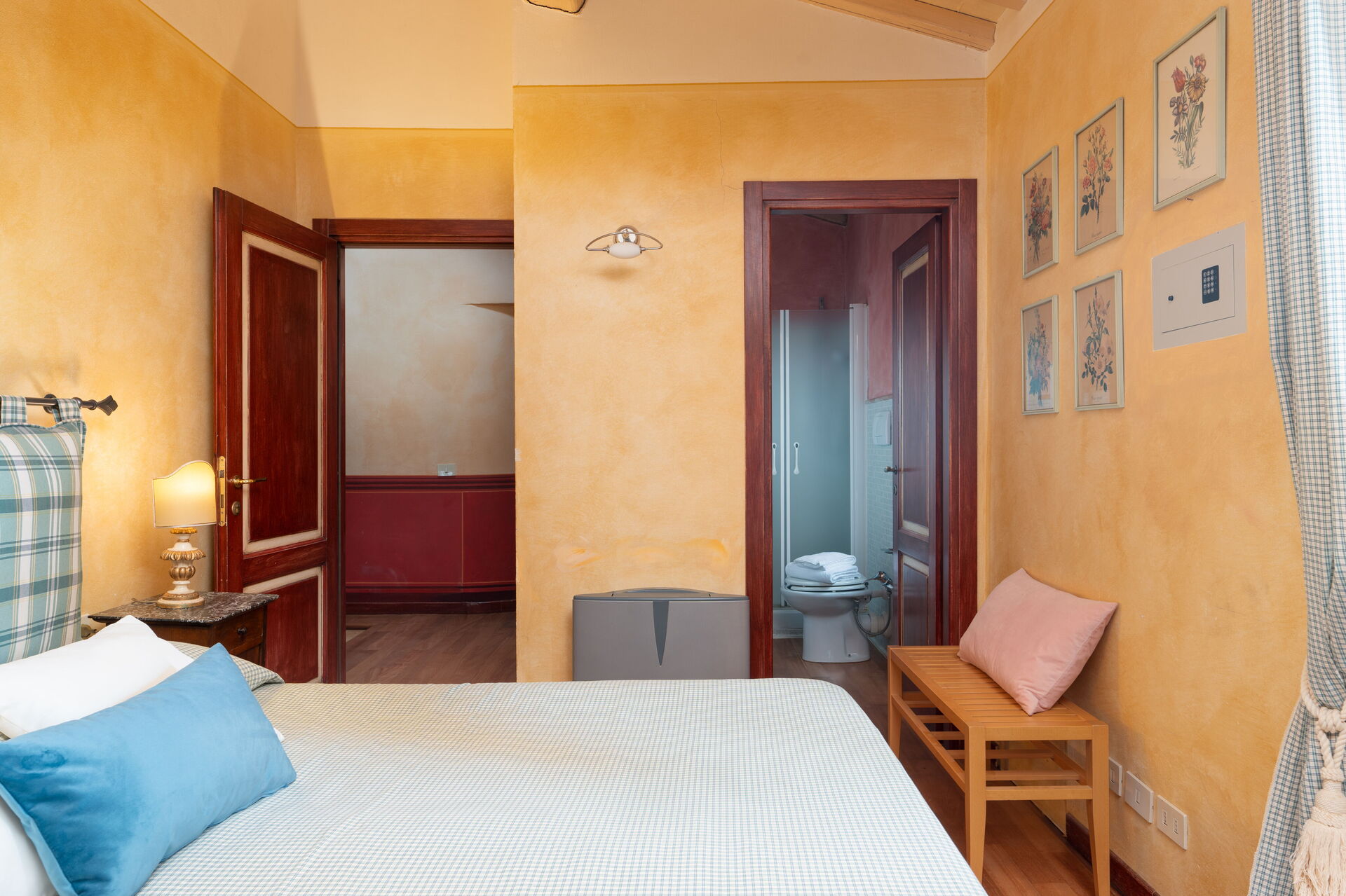 Bedroom + Ensuite Bathroom 4 (17.5 m2): double bed, WIFI internet, air conditioning, safe, basin, toilet, bidet, shower, exit to the terrace.