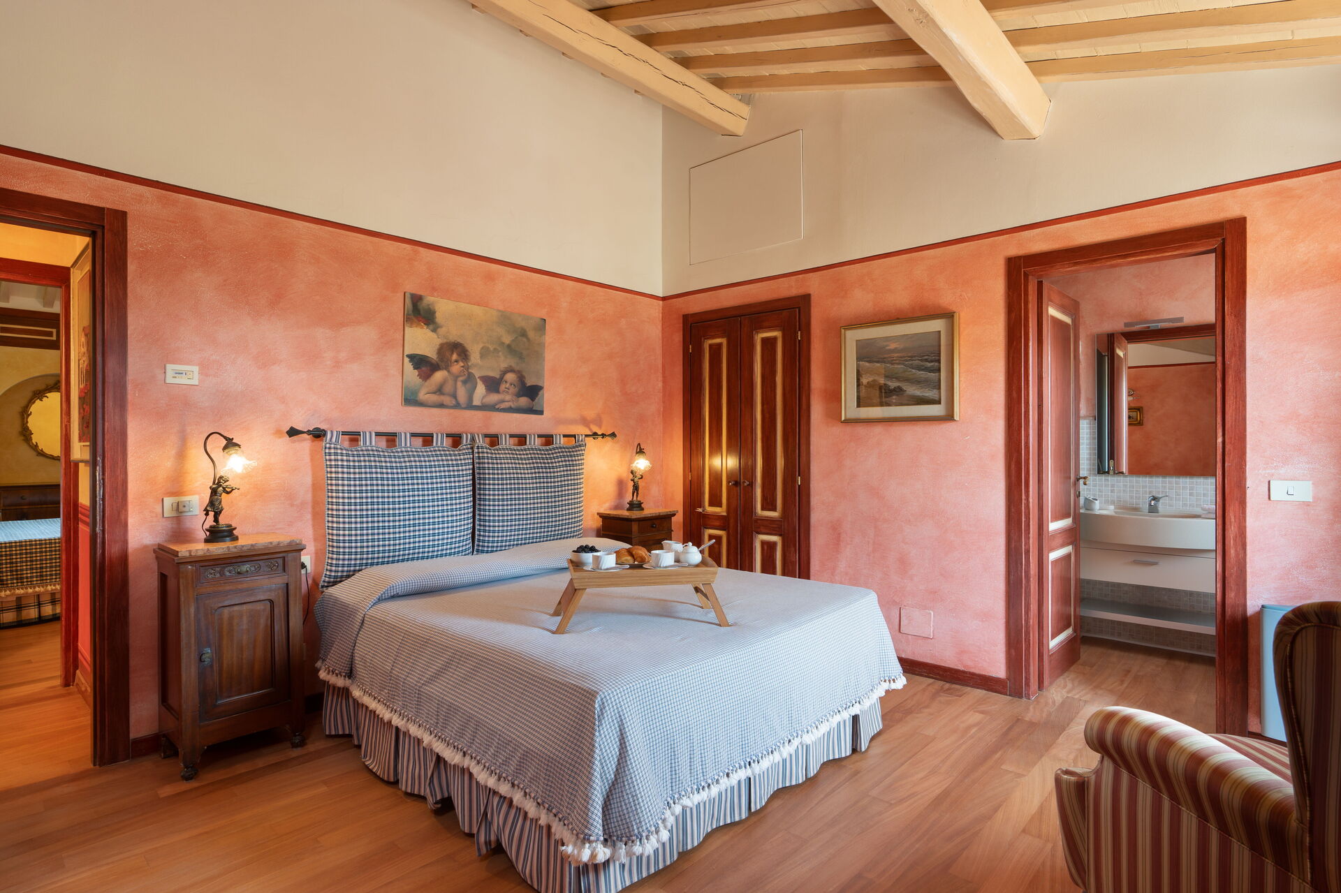 Bedroom + Ensuite Bathroom 6 (14.85 m2): double bed, WIFI internet, air conditioning, safe, basin, toilet, bidet, shower.