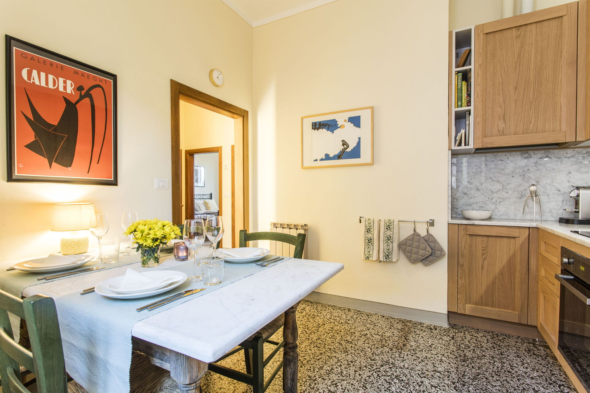 Kitchen: well equipped kitchen, dining table, dishwasher, fridge, freezer, stove top, oven, italian coffee machine, WIFI internet.