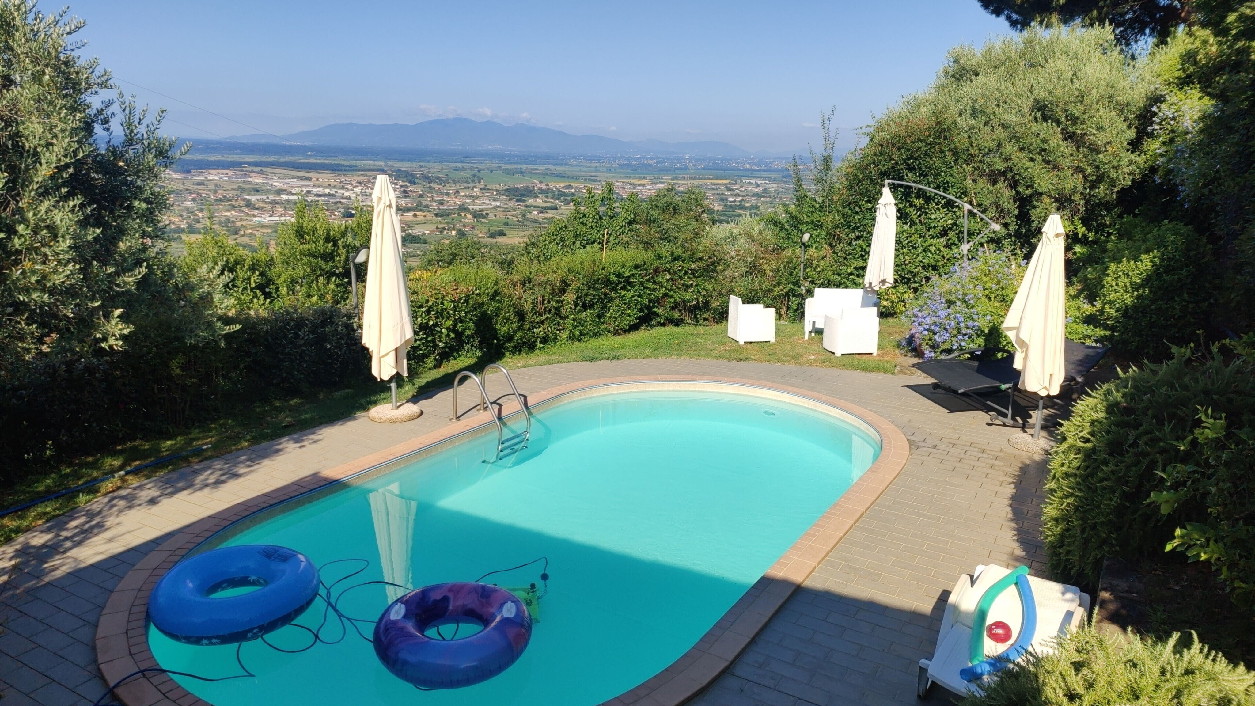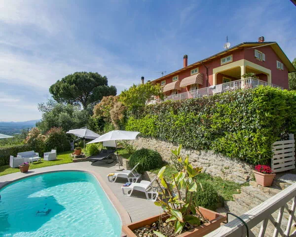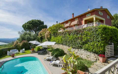 Discover Casa Pier, a beautiful and cozy two-family holiday rental in Larciano, Italy. Surrounded by trees and fields, it boasts a private, fenced garden of 170 m2 with flowers and a seasonal swimming pool (8 x 4 m, available from April 1 to October 30). Enjoy the outdoor shower, pool house with fridge and cooking stove, pergola, garden furniture, barbecue house, and children's playground. Inside, you'll find Internet WiFi, a fitness room, table tennis, and table football. Parking is available for three cars.
