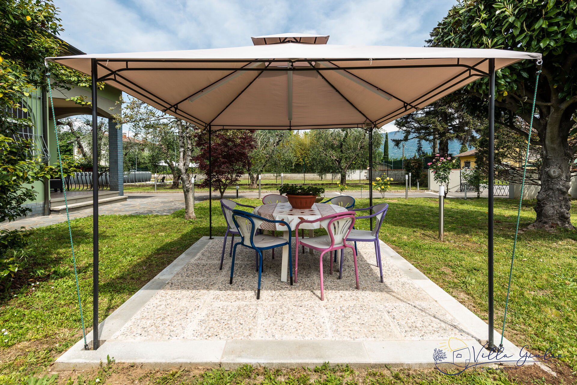 Garden: swimming pool (private, length: 9m, width: 5m, min. depth: 1.35m, outdoor, fenced), shower, WIFI internet, barbecue, al fresco dining, gazebo, five sunbeds, enclosed property.