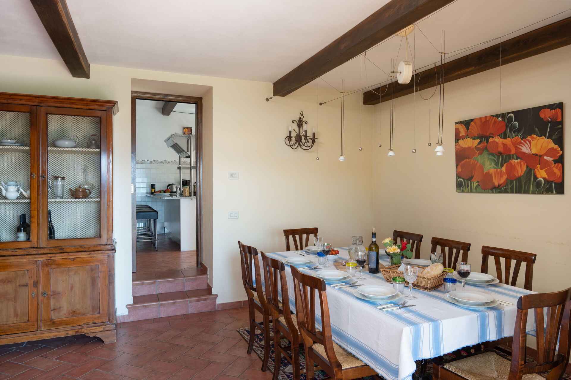When you arrive you will be welcomed by the owner or manager where you’ll find a lovely clean well-maintained property ideal for a relaxing holiday in Tuscany. Regardless of how you spend your days - shopping, visiting museums, sightseeing or just driving in the countryside, when you arrive home you can unwind with your family and friends at the pool for a perfect ending to another day in Tuscany. For your pleasure, on the grounds there is a hot tub and barbecue grill. Sharing a meal with friends and family is a big part of the Tuscan culture. Take advantage of the well-equipped kitchen to prepare meals using local produce while on your vacation. The kitchen includes coffee machine, microwave, stove and refrigerator, as well as, plenty of tableware and cutlery for up to eight people.