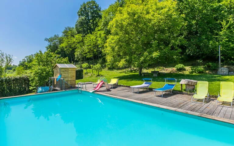 San Casciano V.P.: Small house "La Sorgente", detached, surrounded by trees and fields. 4 km from the centre of San Casciano in Val di Pesa, in a secluded, sunny position, 100 m from the edge of the forest, 100 m from the river, in the countryside. For shared use: swimming pool (5 x 10 m, seasonal availability: 15.May. - 15.Oct.). Outdoor shower, garden furniture, pool maintenance by the owner/gardener. Private: garden with wildlife garden and flowers, parking at the house on the premises. Shop 2 km, grocery 2 km, supermarket 4 km, restaurant 500 m, bus stop "Calzaiolo" 500 m, sandy beach "Cecina Mare" 95 km, indoor swimming pool 4 km. Golf course (18 hole) 20 km, tennis 2 km, walking paths from the house, cycle lane, fishing possibilities 100 m. Nearby attractions: Firenze 20 km, San Gimignano 25 km, Siena 40 km. Please note: baby equipment (included). The owner lives on the same property. Owner lives in separate semi-detached house.