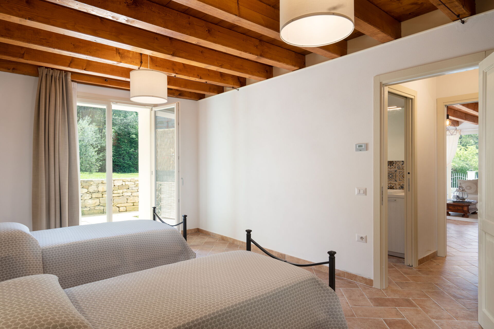 Bedroom: three single beds, WIFI internet, air conditioning, exit to the garden.