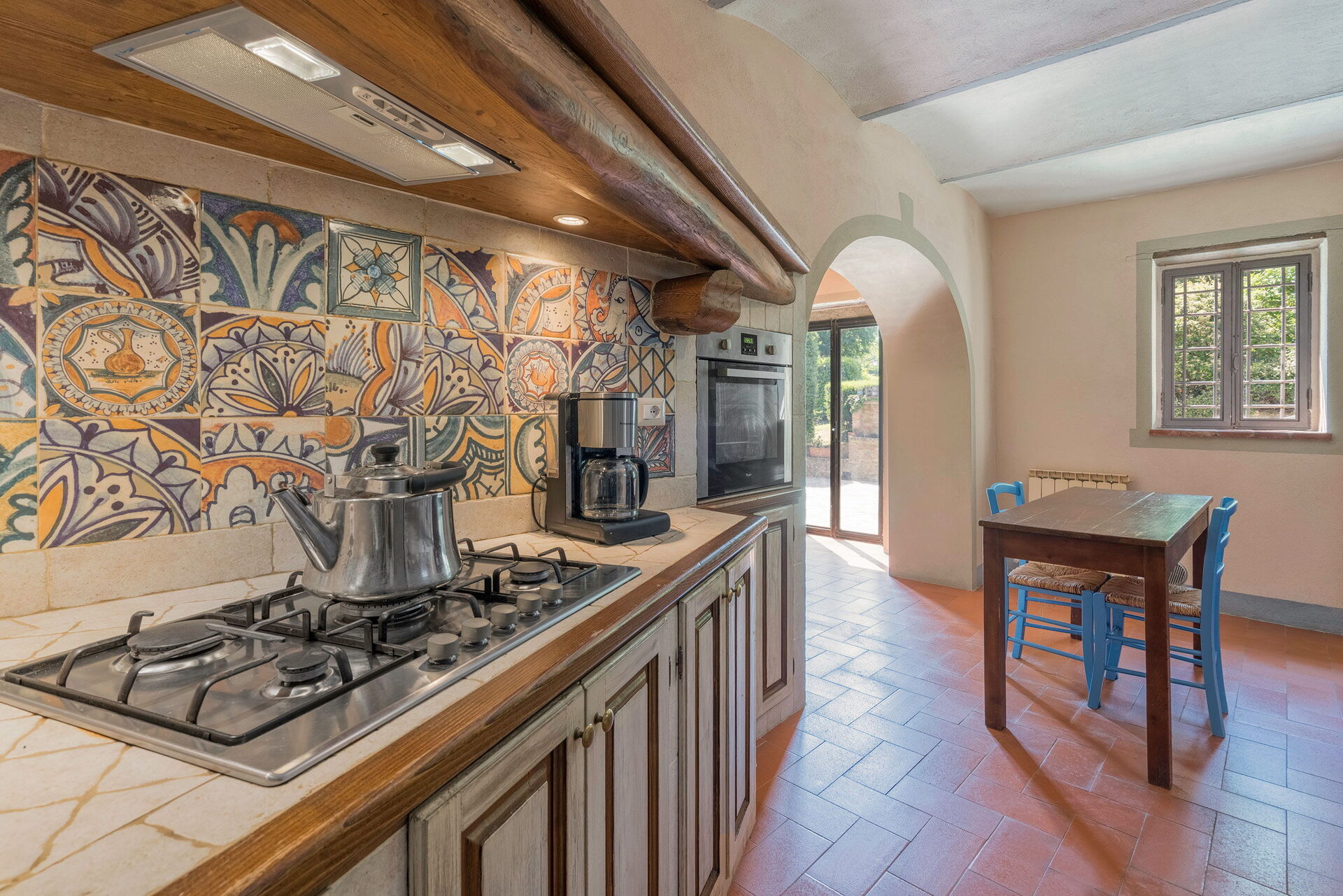 Upon arrival you’ll find a beautiful clean well-maintained property with views of the hills ideal for a splendid vacation in Tuscany. For your enjoyment you will find a private pool where you can unwind while enjoying a nice cold beverage after a busy day of sightseeing. Also available outside are a patio and barbecue grill. If you enjoy cooking for family and friends there is a well-equipped kitchen including coffee machine, toaster, stove and refrigerator, as well as, plenty of tableware and cutlery for up to 13 people.
