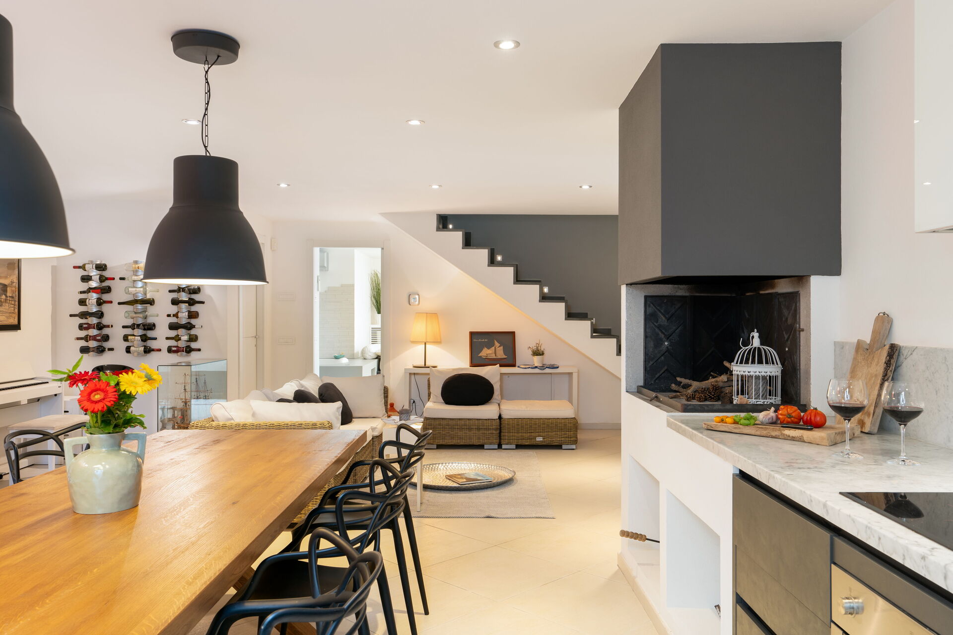 Kitchen + living room: well equipped kitchen, dining table, dishwasher, fridge, freezer, microwave, stove top, oven, italian coffee machine, sofa, WIFI internet, air conditioning, satellite tv.
