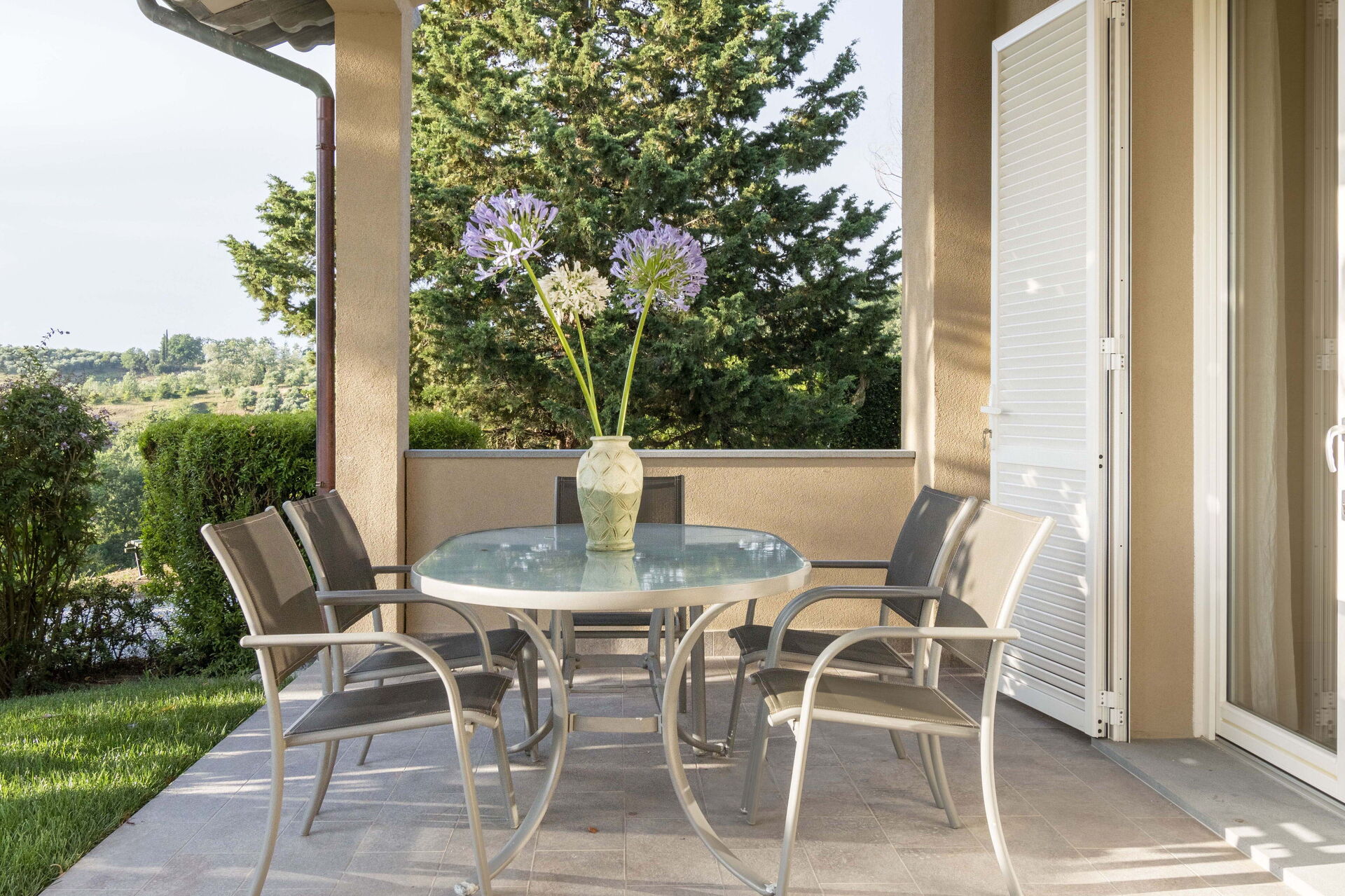 When you arrive you will be welcomed by the owner or manager where you’ll find a lovely clean well-maintained property with views of the hills and the mountains ideal for a peaceful vacation in Tuscany. After a hectic day of shopping, spend some time with friends and family poolside enjoying a glass of wine - a perfect way to unwind at the end the day. For your pleasure, on the grounds there is a barbecue grill and patio. Dining with friends and family is a big part of the Tuscan culture. Take advantage of the well-equipped kitchen to prepare meals using local produce while on your vacation. The kitchen includes coffee machine, toaster, stove and refrigerator, as well as, plenty of tableware and cutlery for up to 12 people. Dine 'al fresco' like a real Tuscan, the fully furnished patio is the ideal setting to enjoy food, family and the beautiful Tuscan weather.