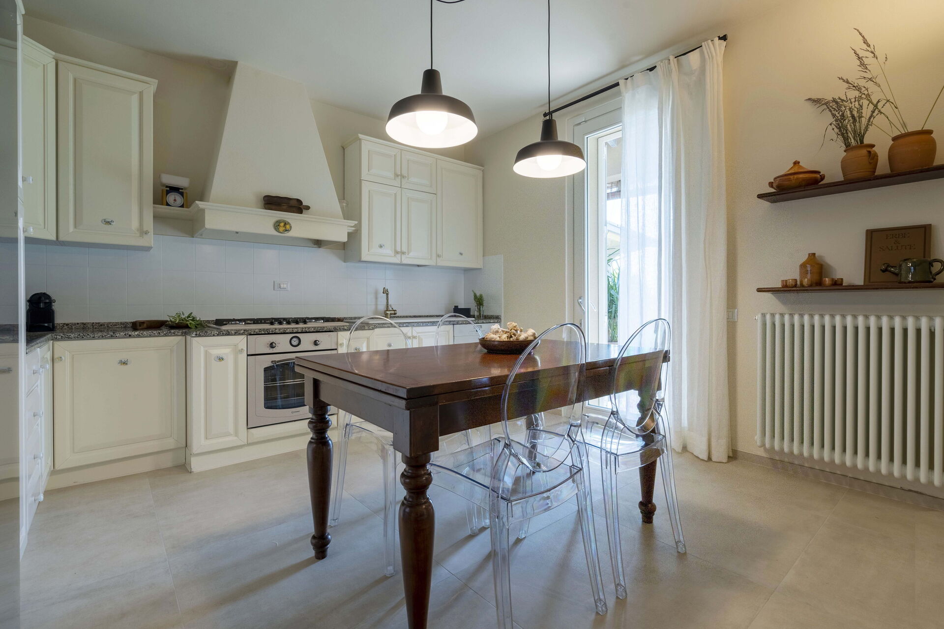 Kitchen: well equipped kitchen, dining table, dishwasher, fridge, freezer, stove top, oven, toaster, italian coffee machine, american coffee machine, WIFI internet, exit to the patio.