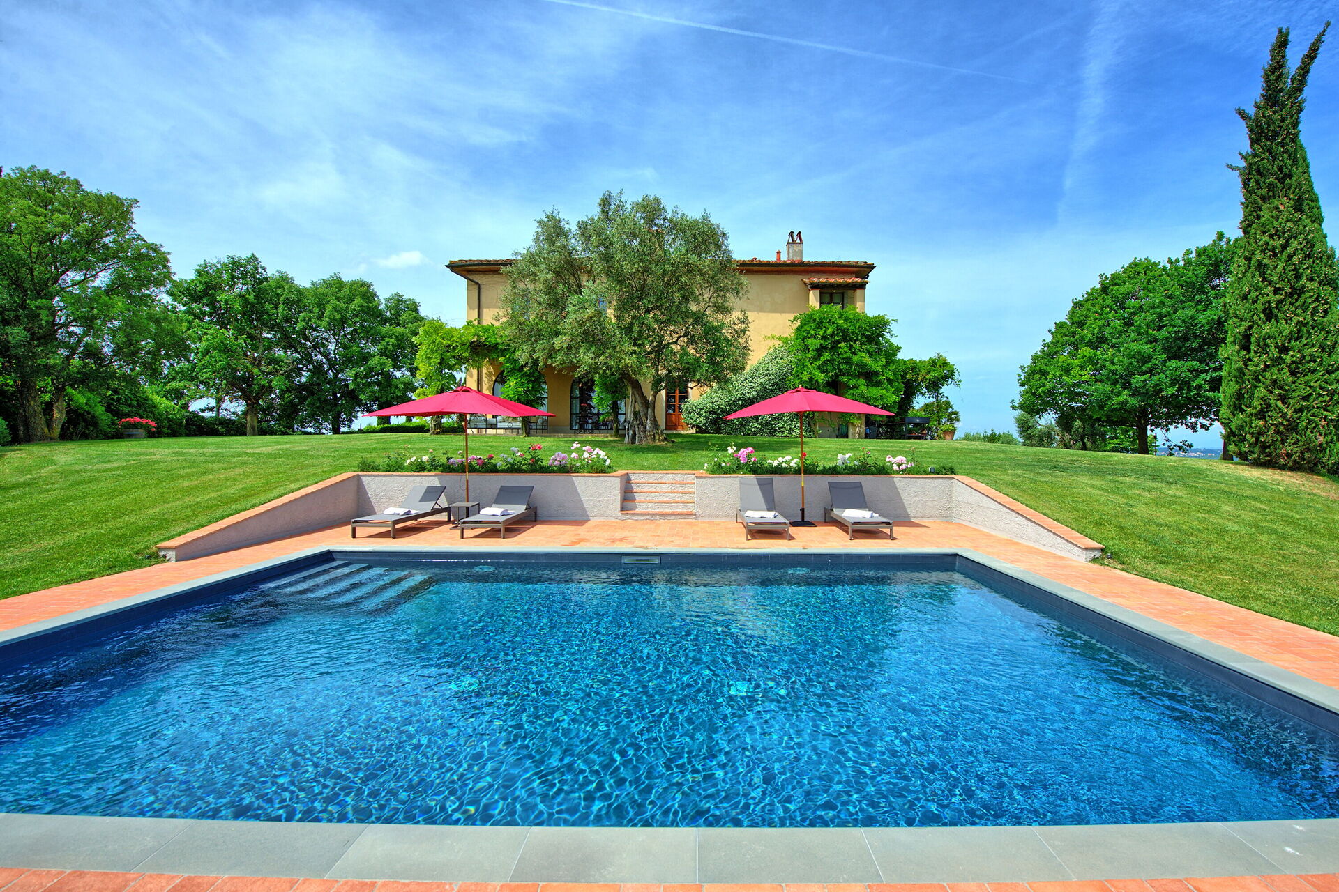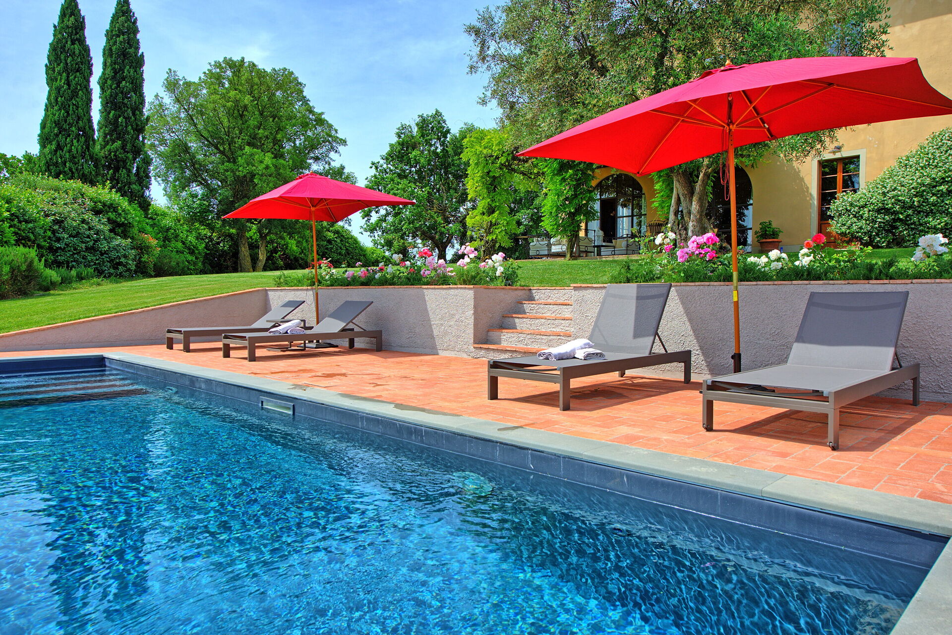 Nestled in the Tuscan countryside, this villa for 12 people offers an elegant pool with panoramic views.
