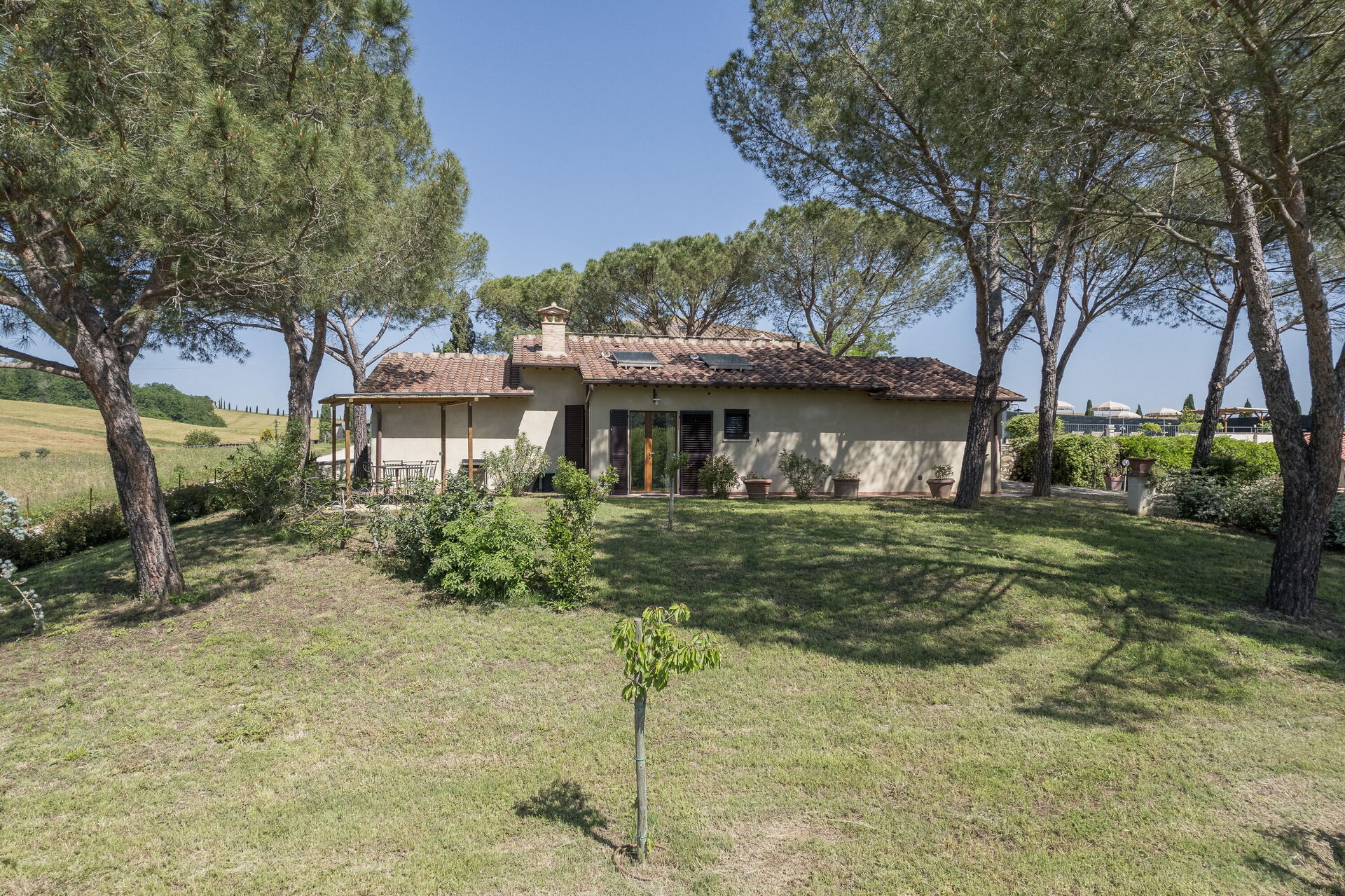 After arriving you will be greeted by the owner or manager where you’ll find a beautiful clean well-maintained property with views of the hills ideal for a splendid vacation in Tuscany. After a hectic day of shopping, spend some time with friends and family poolside enjoying a glass of wine - a perfect way to unwind at the end the day. Sharing a meal with friends and family is a big part of the Tuscan culture. Take advantage of the well-equipped kitchen to prepare meals using local produce while on your vacation. The kitchen includes coffee machine, microwave, stove and refrigerator, as well as, plenty of tableware and cutlery for up to eight people.
