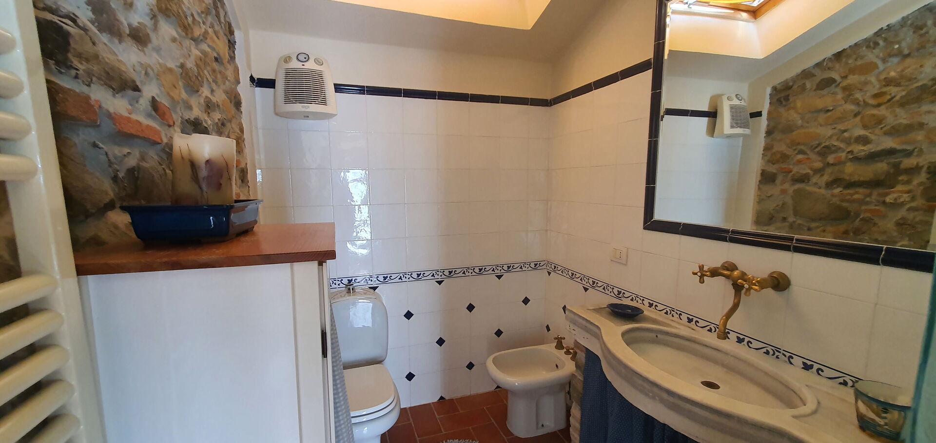 Bathroom: basin, toilet, bidet, shower.