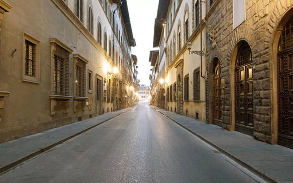 While the property is situated within a historic urban palazzo, its location on one of Florence's most atmospheric and architecturally rich streets provides an immediate outdoor experience of remarkable character. The surrounding Oltrarno neighbourhood, with its artisan workshops, intimate piazzas, and elegant facades, invites leisurely exploration directly from your doorstep. The area's quiet setting, combined with its restricted traffic zone, ensures a peaceful and refined atmosphere in the immediate surroundings, making every moment spent outdoors a genuinely pleasant experience.