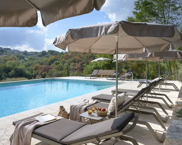 The pool is heated from May to October and is shared exclusively by the ten apartments and three villas.