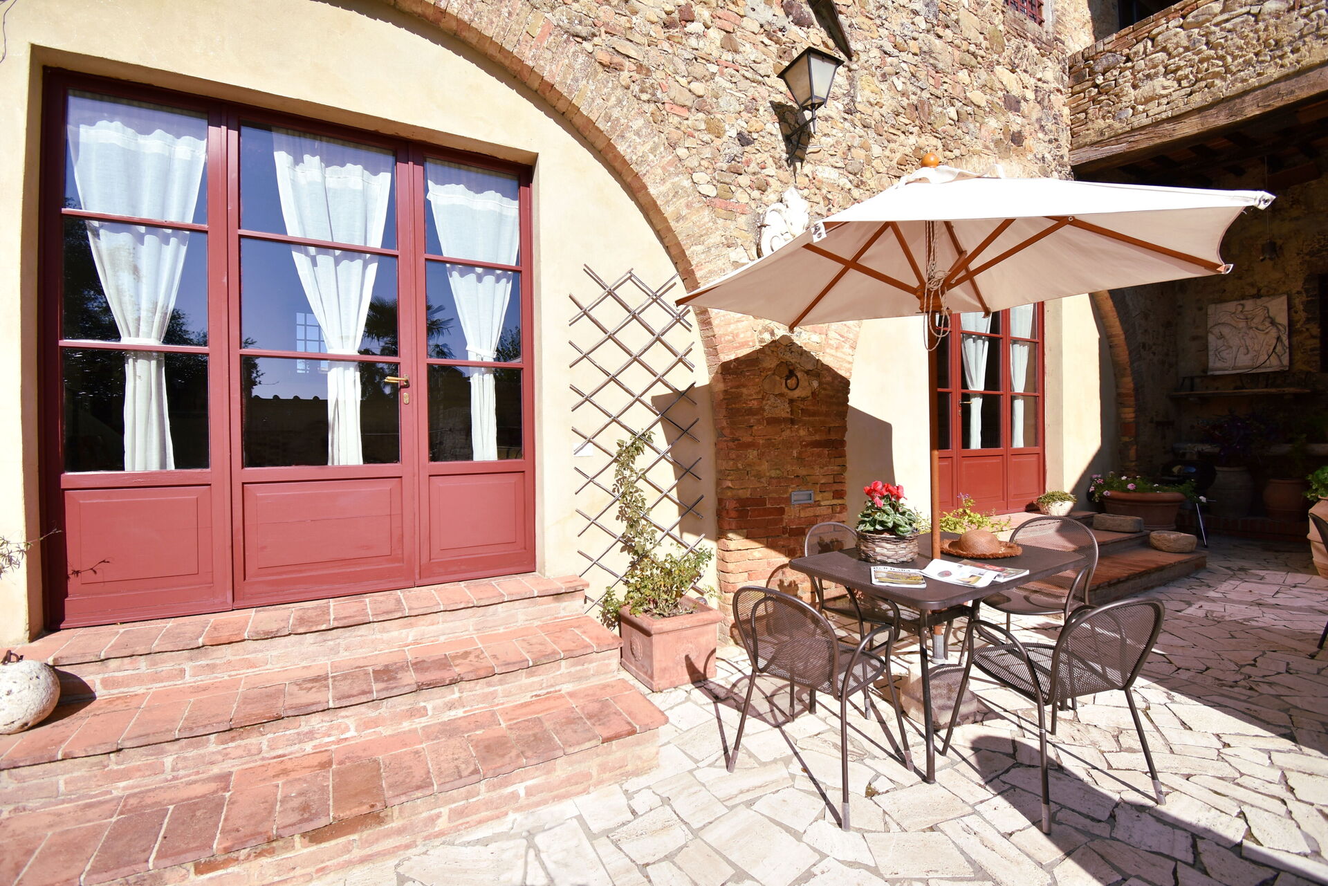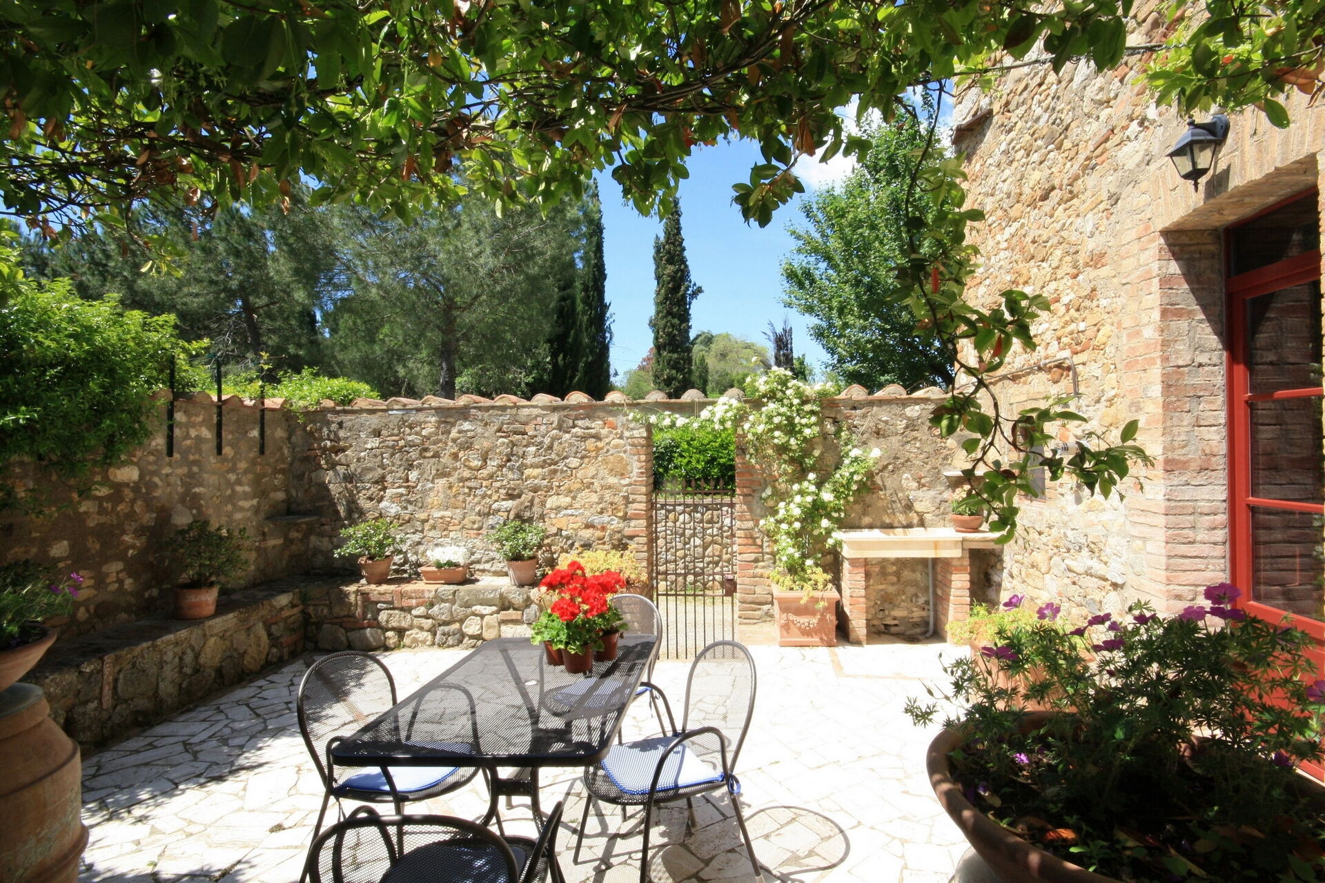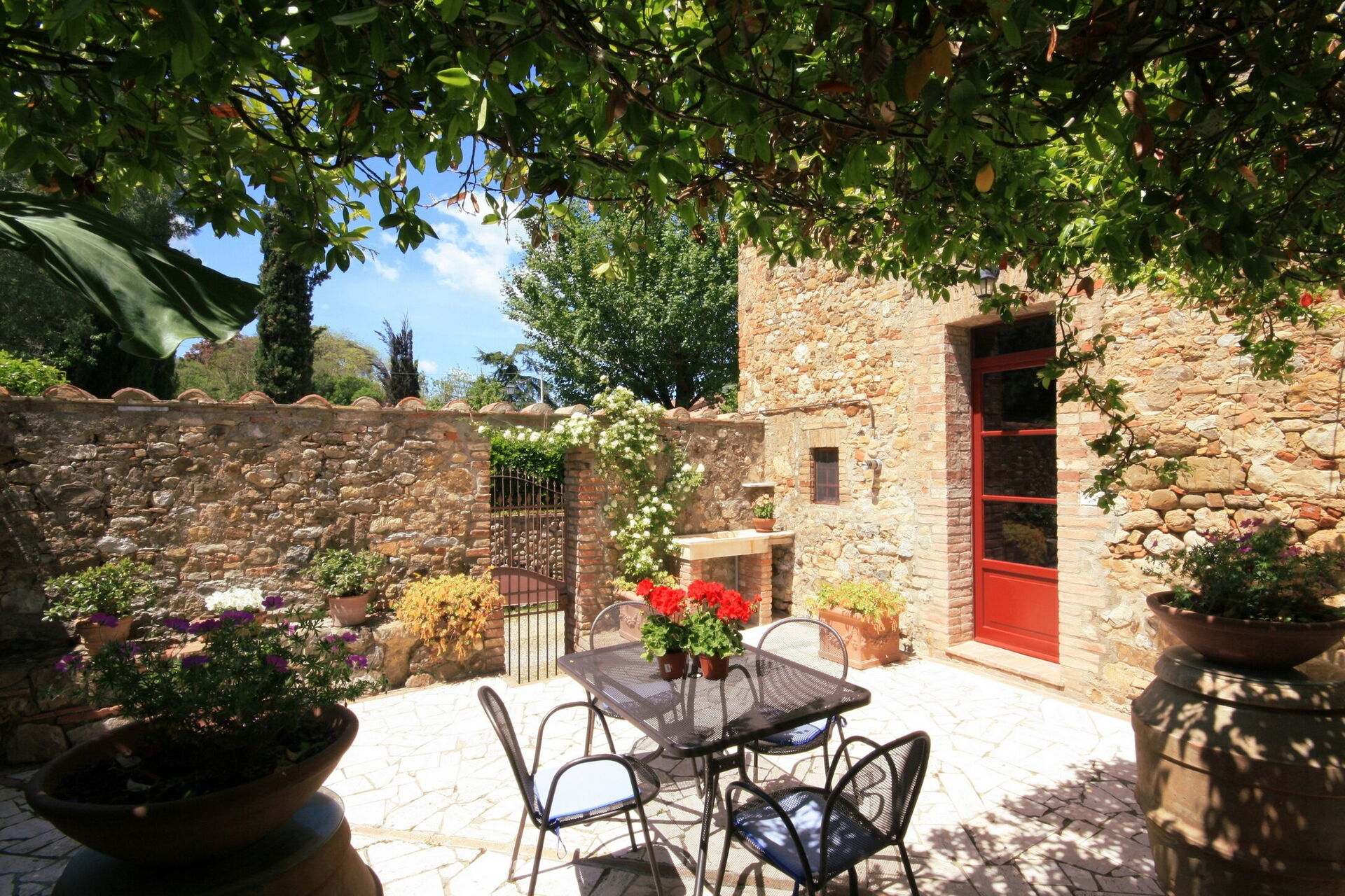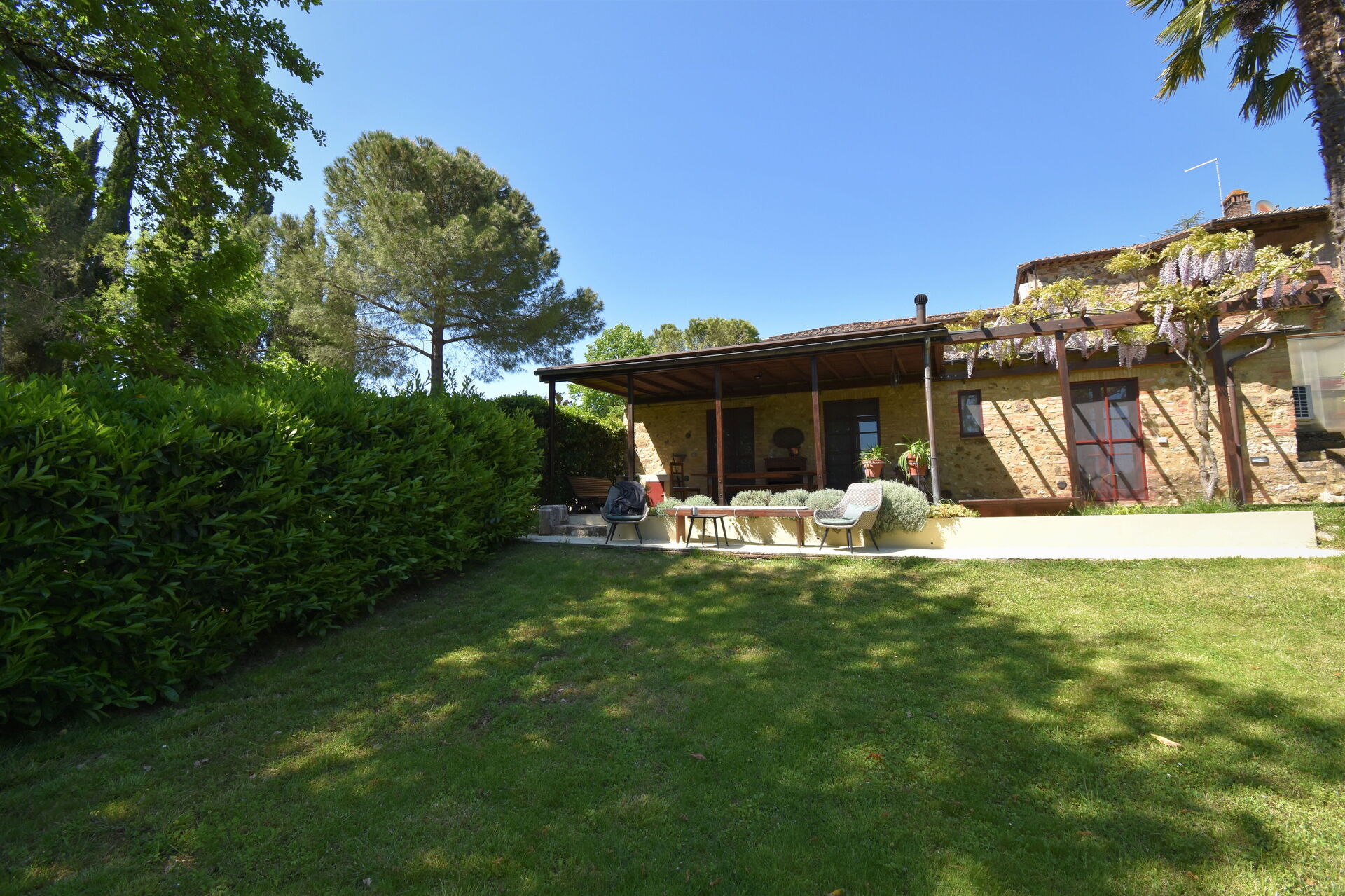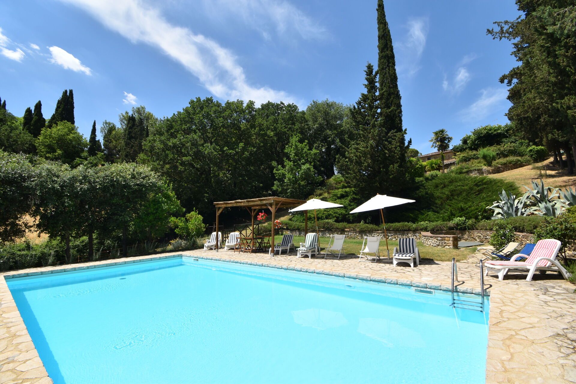 Podere Le Muricce is located 8 km (5 mi) from Siena, Italy and only 34 km (21 mi) from San Gimignano in the tourist area "Siena And Surroundings". Podere Le Muricce is a lovely stone building (300 sq m) with private pool, air conditioning and WiFi internet. The property can accommodate up to 12 guests comfortably in five bedrooms with four bathrooms.
