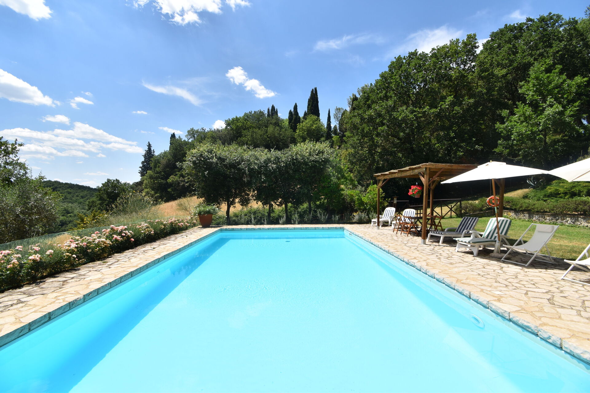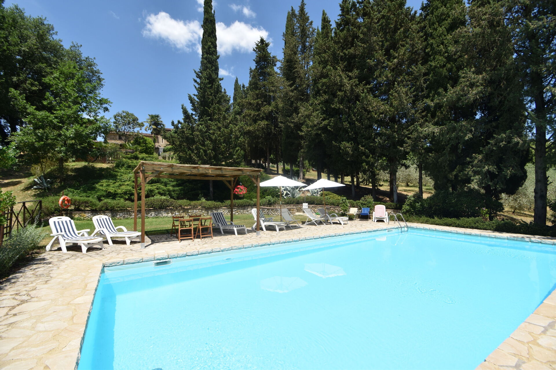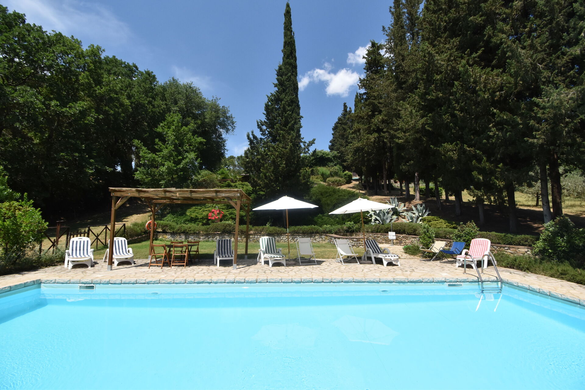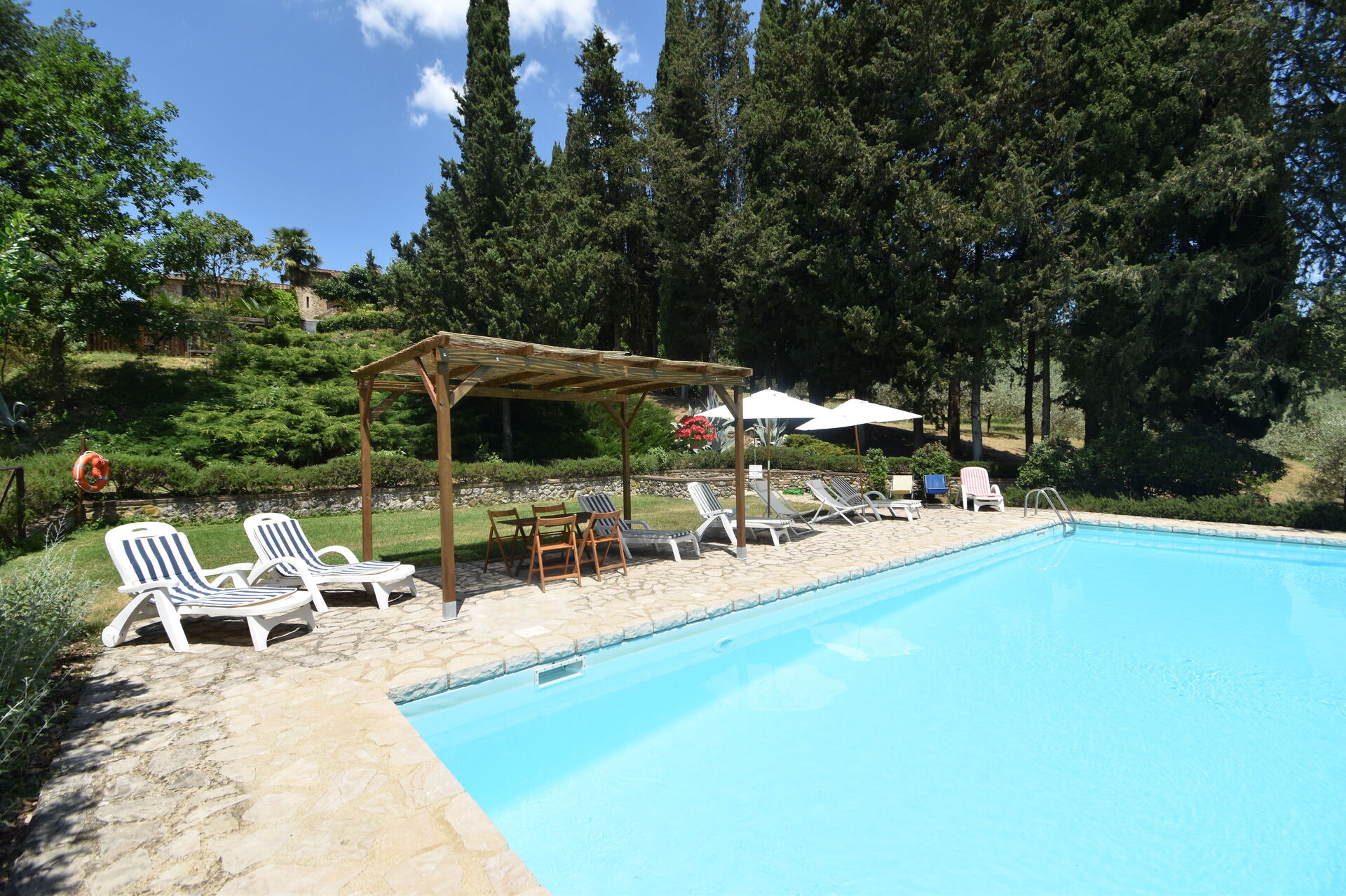 After arriving you will be welcomed by the owner or manager where you’ll find a nice clean well-maintained property perfect for a peaceful vacation in Tuscany. After a busy day of sightseeing, spend some time with friends and family poolside enjoying a glass of wine - a perfect way to relax at the end the day. Also available outside are a patio and barbecue grill. Dining with friends and family is a big part of the Tuscan culture. Take advantage of the kitchen to prepare meals using local produce while on your holiday. The kitchen includes coffee machine, toaster and refrigerator, as well as, plenty of tableware and cutlery for up to 12 people.