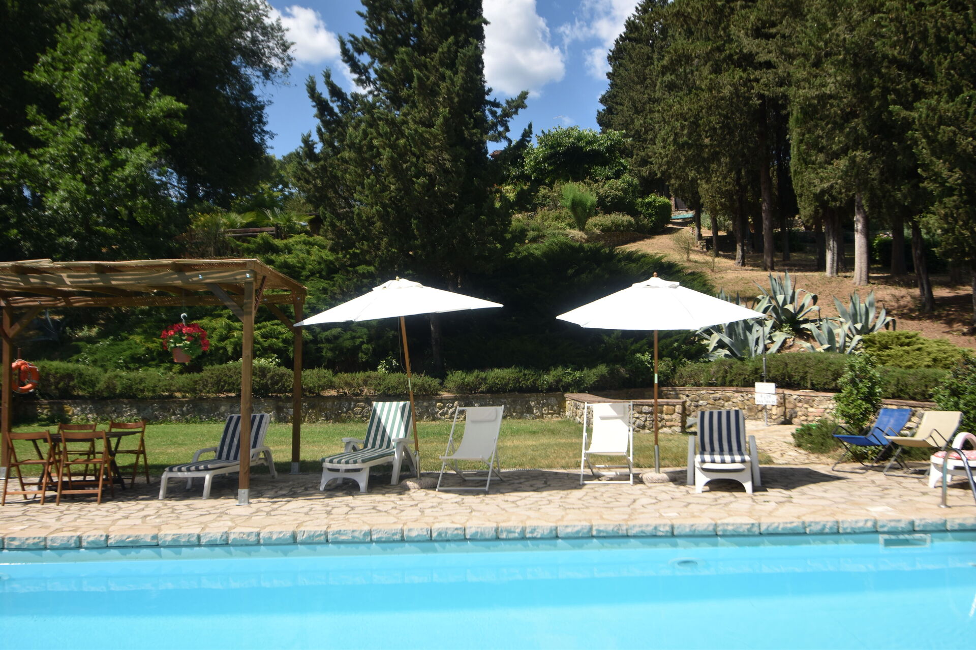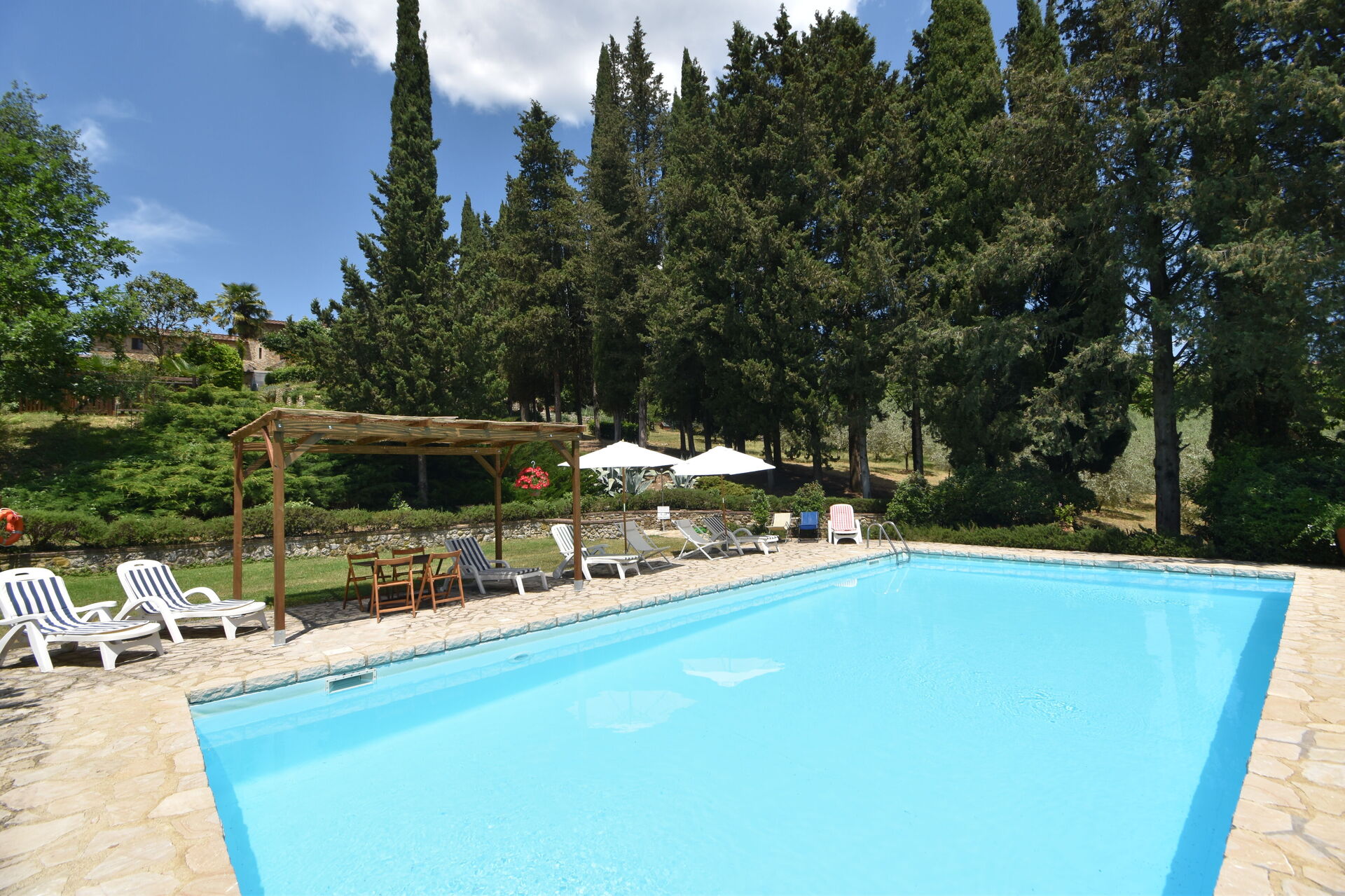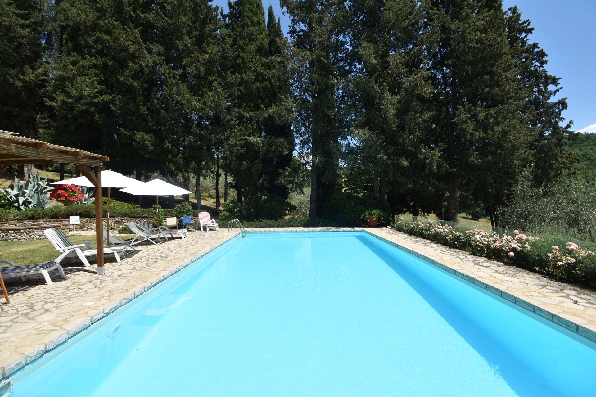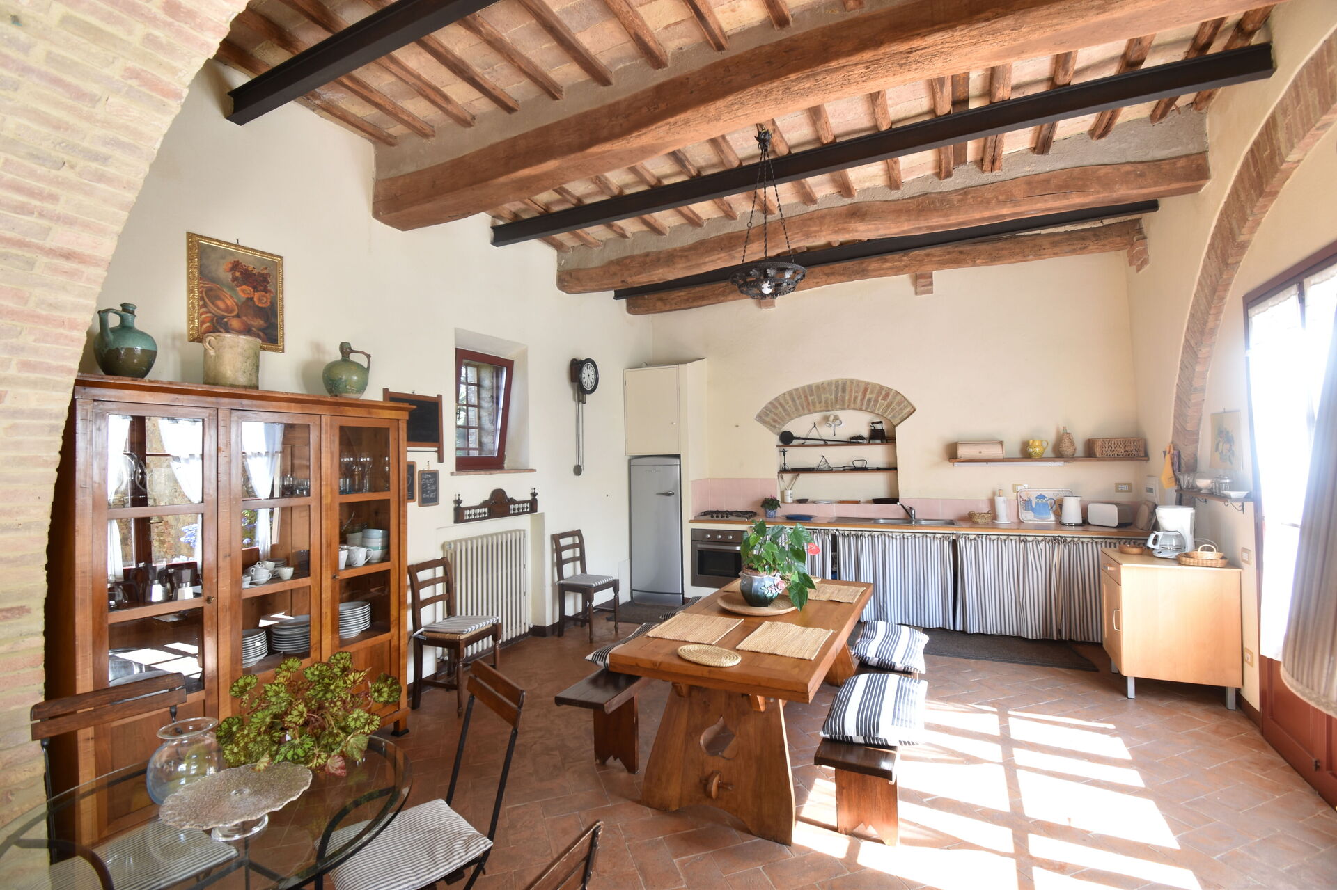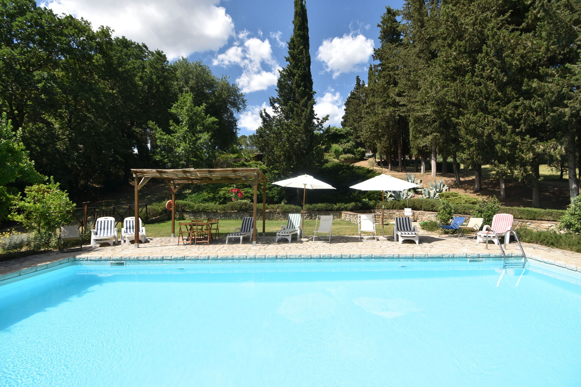 After arriving you will be welcomed by the owner or manager where you’ll find a nice clean well-maintained property perfect for a peaceful vacation in Tuscany. After a busy day of sightseeing, spend some time with friends and family poolside enjoying a glass of wine - a perfect way to relax at the end the day. Also available outside are a patio and barbecue grill. Dining with friends and family is a big part of the Tuscan culture. Take advantage of the kitchen to prepare meals using local produce while on your holiday. The kitchen includes coffee machine, toaster and refrigerator, as well as, plenty of tableware and cutlery for up to 12 people.