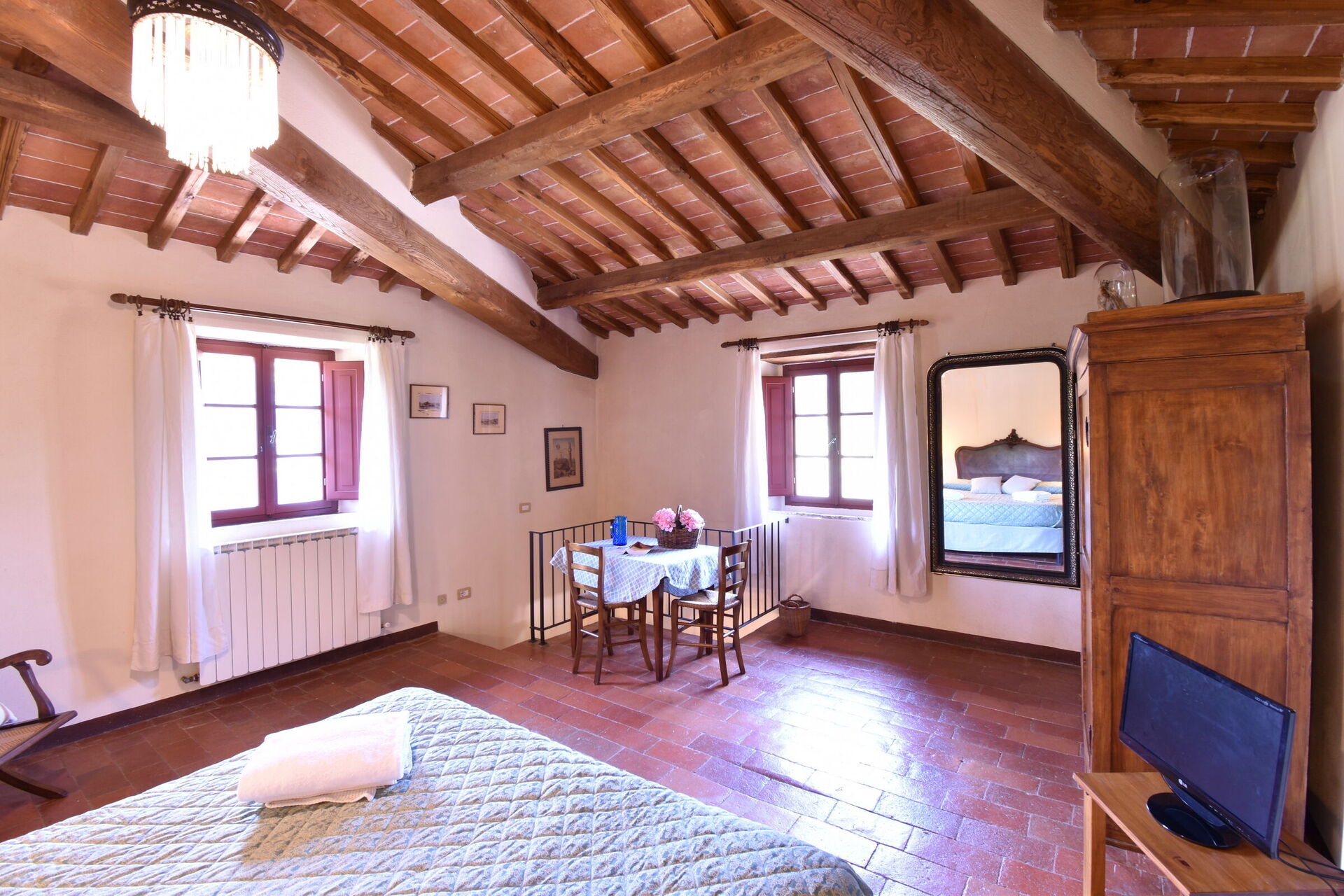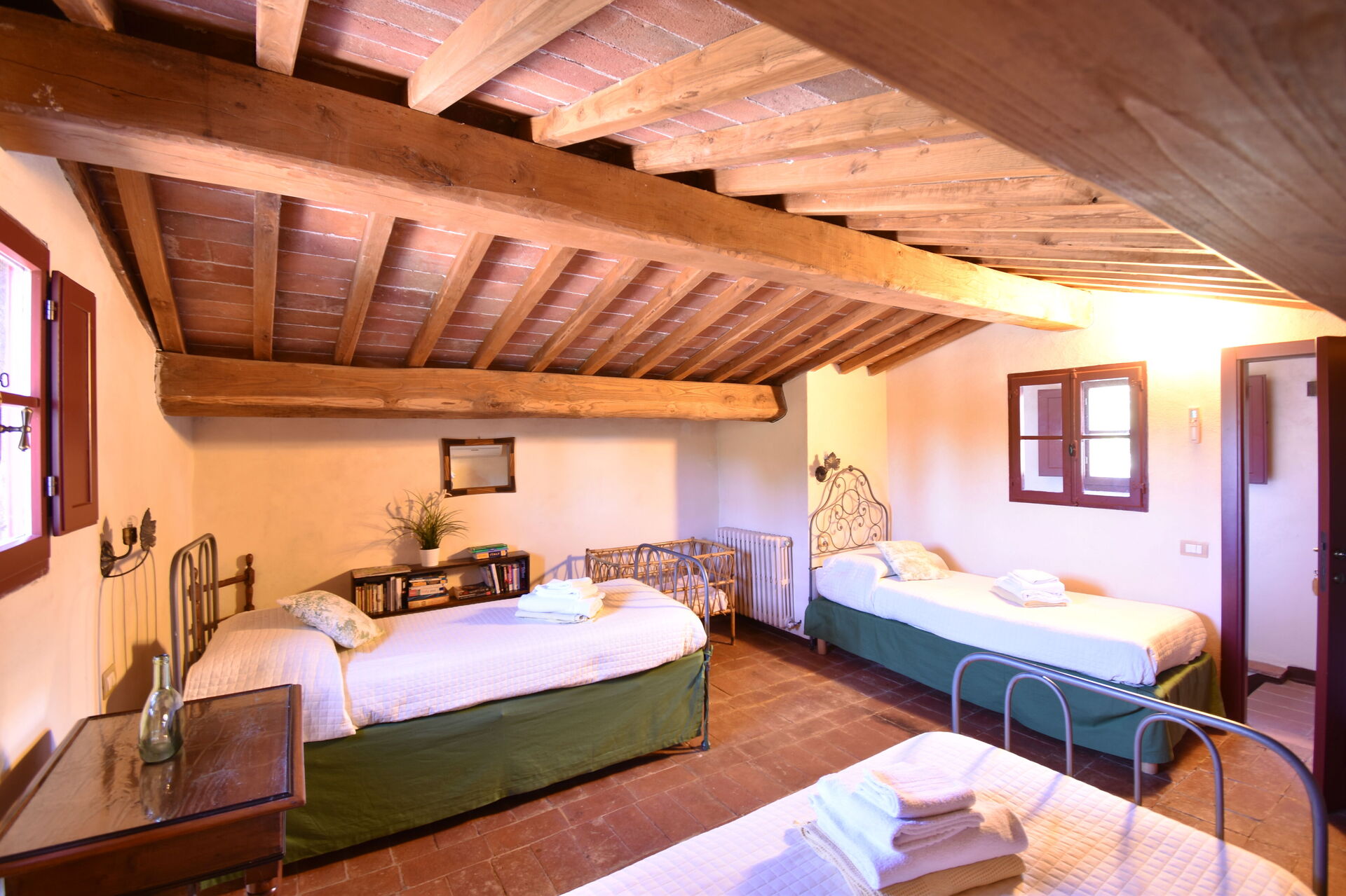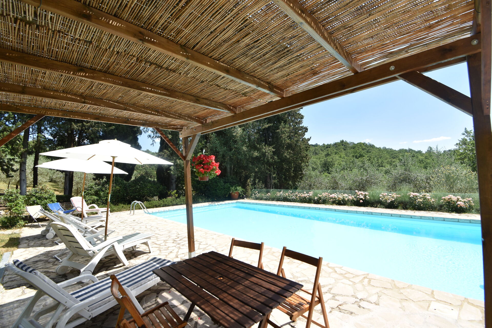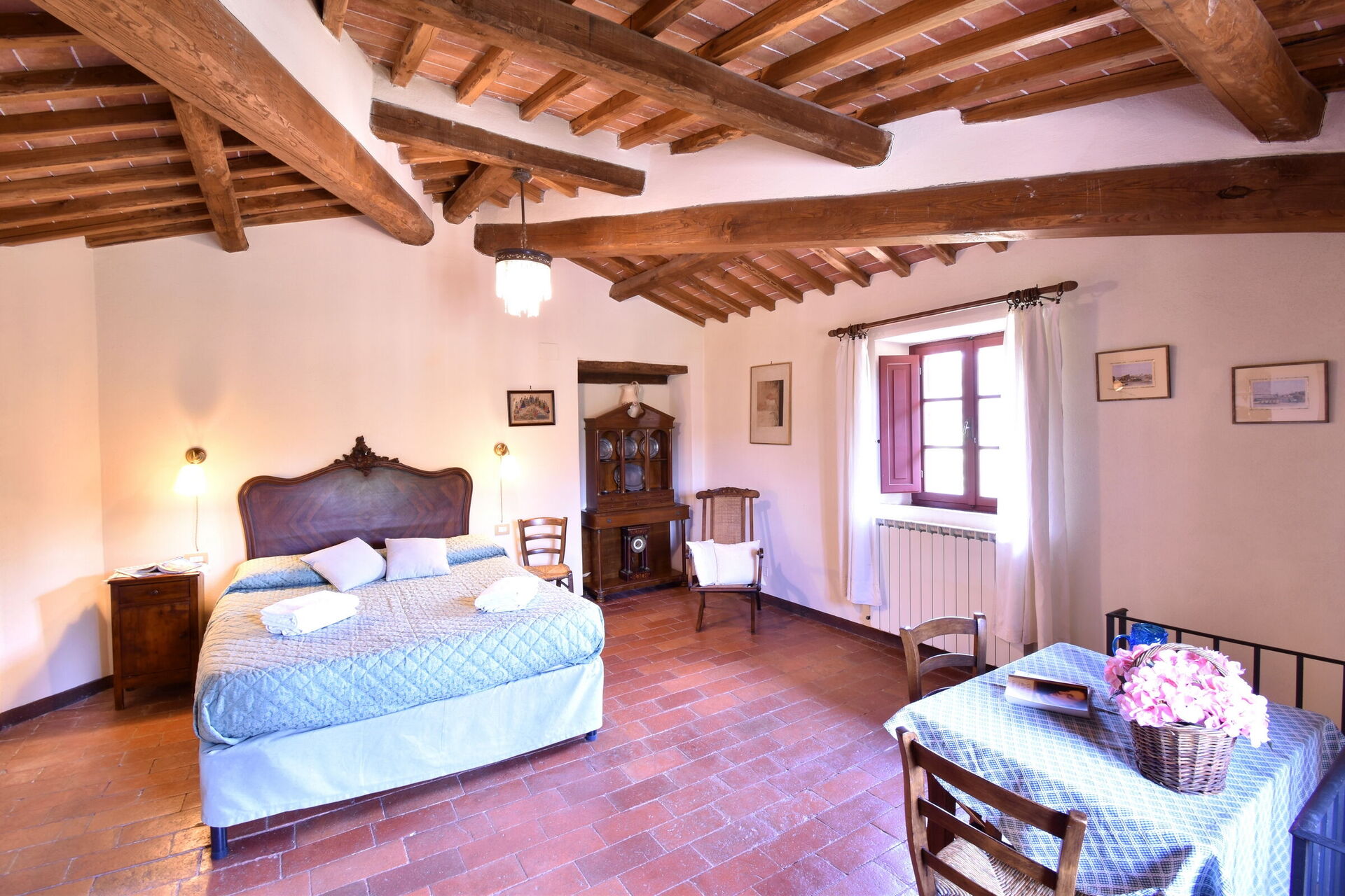 After arriving you will be welcomed by the owner or manager where you’ll find a nice clean well-maintained property perfect for a peaceful vacation in Tuscany. After a busy day of sightseeing, spend some time with friends and family poolside enjoying a glass of wine - a perfect way to relax at the end the day. Also available outside are a patio and barbecue grill. Dining with friends and family is a big part of the Tuscan culture. Take advantage of the kitchen to prepare meals using local produce while on your holiday. The kitchen includes coffee machine, toaster and refrigerator, as well as, plenty of tableware and cutlery for up to 12 people.