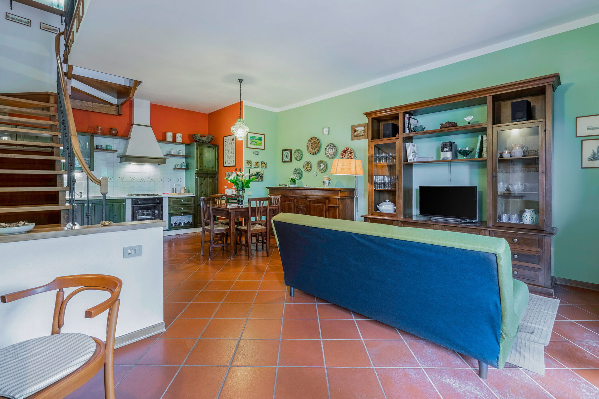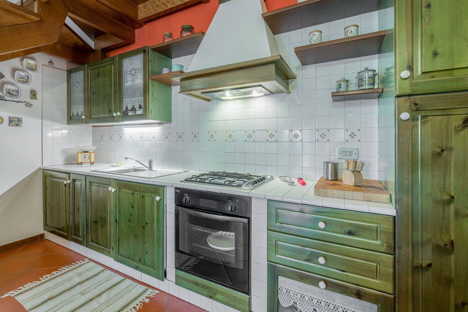 Kitchen + living room: well equipped kitchen, dishwasher, fridge, freezer, microwave, oven, italian coffee machine, sofa bed (length: 1.8m, width: 1.2m), WIFI internet, television, ceiling fan, stereo hifi, exit to the garden.